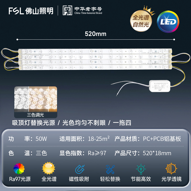 • ★전체 스펙트럼 Ra97★50W-3톤 조명 [—1 드래그 4 스트립 모듈]