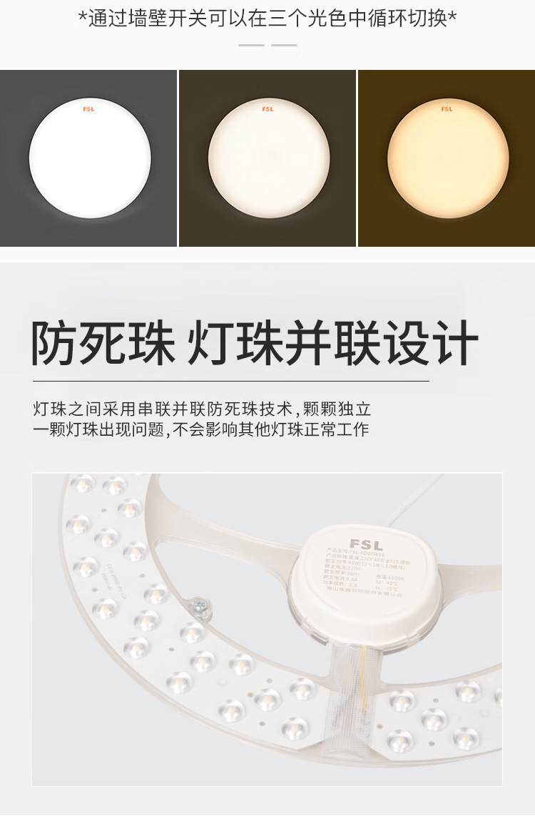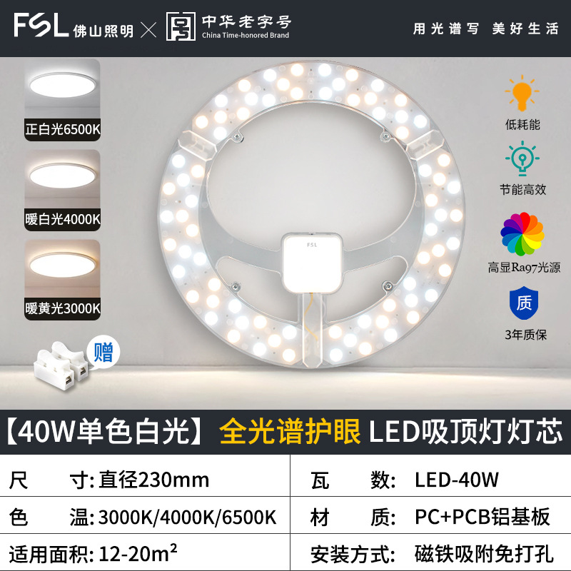 FSL 불산 조명 전체 스펙트럼 LED 천장 램프 재건 보드 SMD 광원 원형 교체 윅 모듈 램프 패널스토어 가기