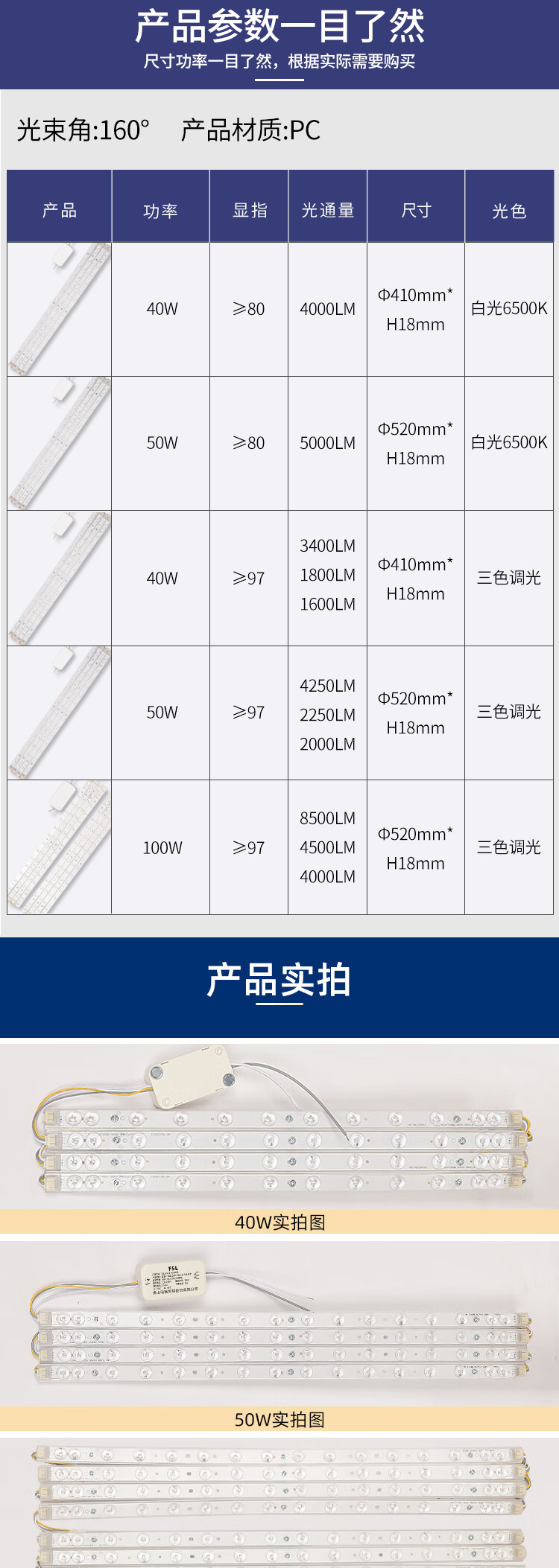 • ★전체 스펙트럼 Ra97★40W 3톤 조명 [풀와트 초고휘도 링 모듈]