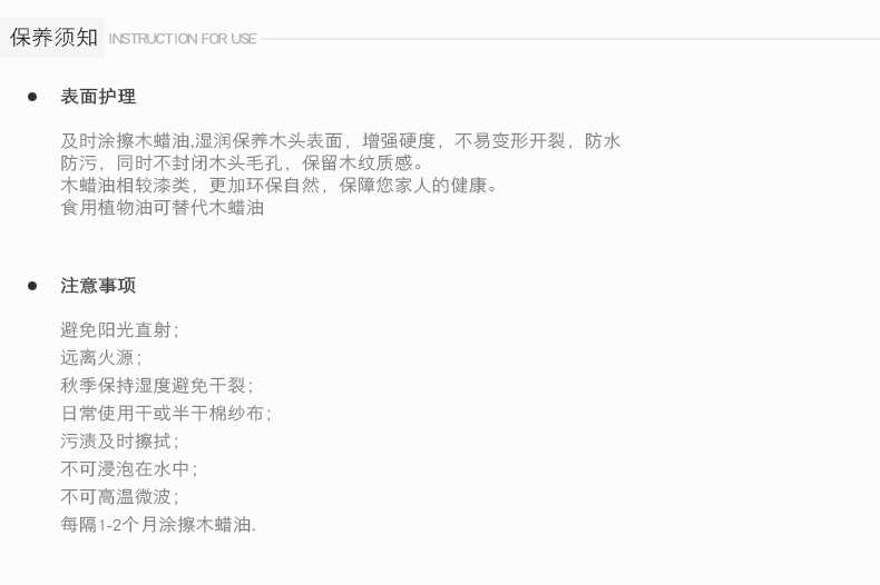 7.无保养蜡的情况下可用食用植物油替代清洁和擦拭。