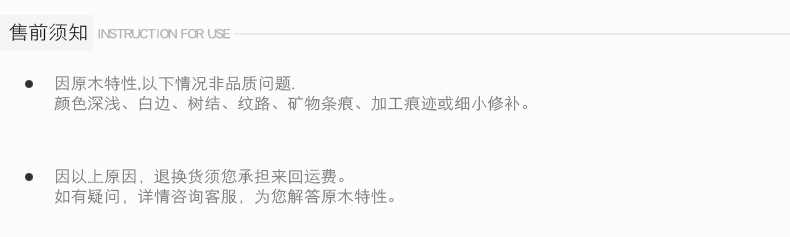 6.产品使用一段时间后,可使用木器保养蜡进行养护,使产品保持光亮整洁。