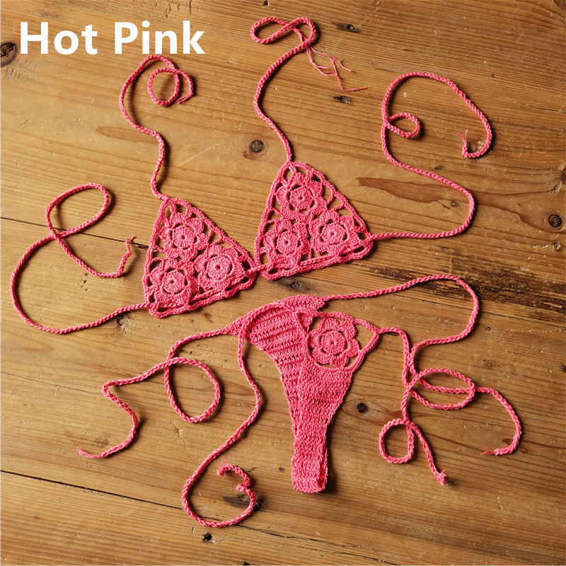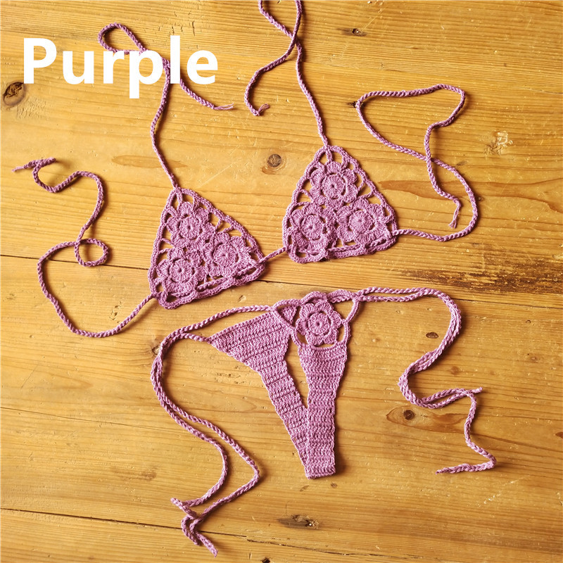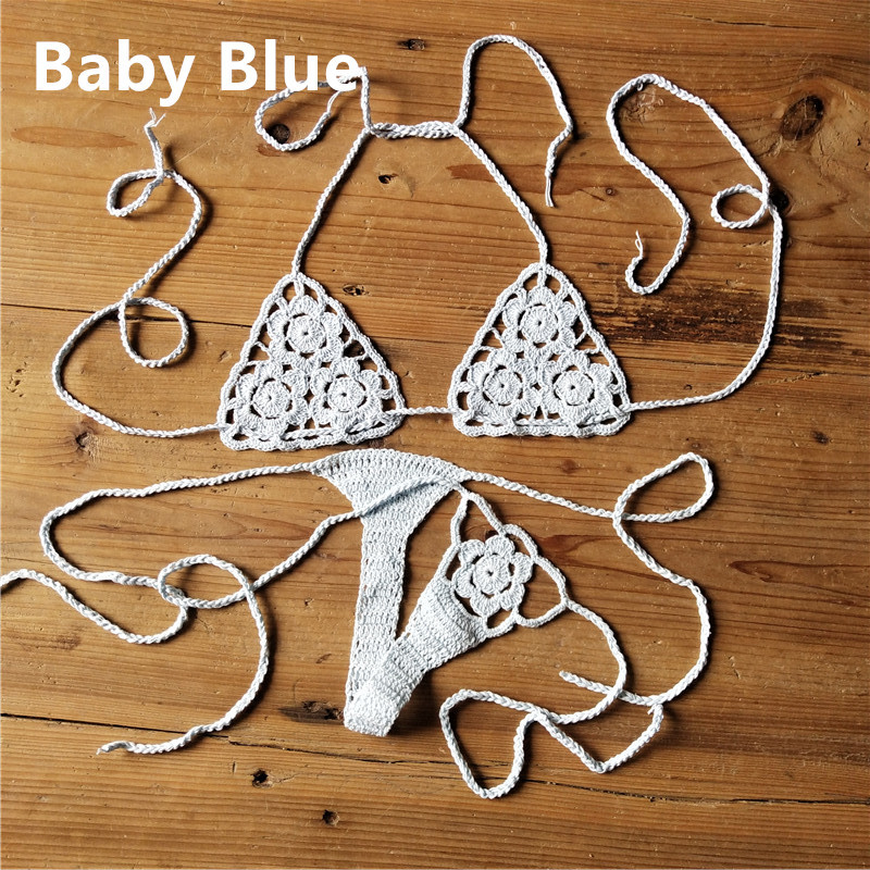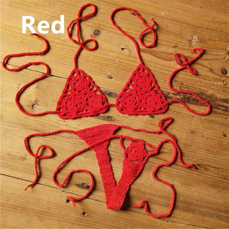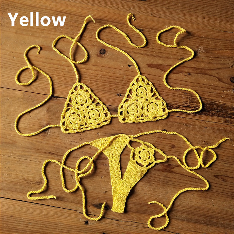 Crochet Mini bikini Set G Thong String Beach Micro Swimwear Cotton Sexy Lingerie