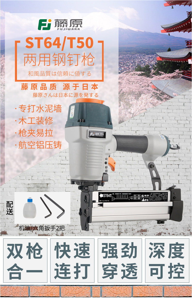 후지와라 공압 네일 건 ST64 T50 이중 목적 스틸 네일 건 네일 그래버 목공 도구 트렁킹 스커트 라인스토어 가기