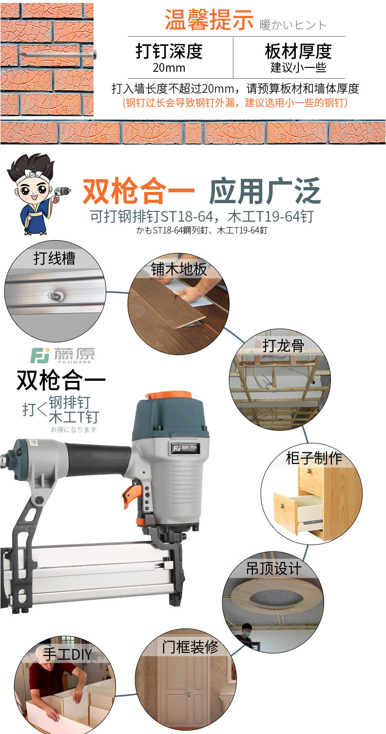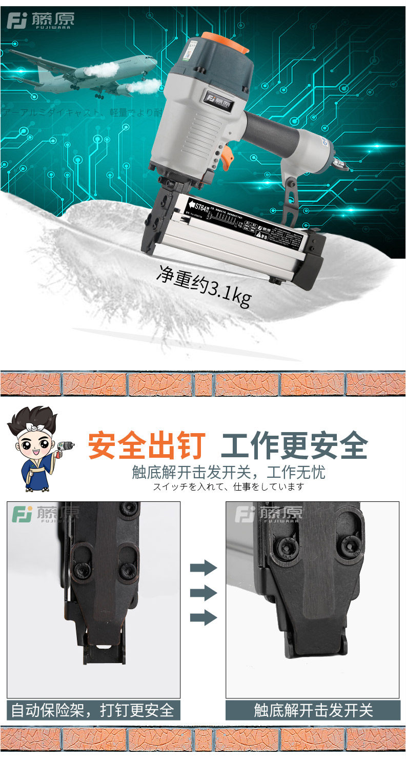 후지와라 공압 네일 건 ST64 T50 이중 목적 스틸 네일 건 네일 그래버 목공 도구 트렁킹 스커트 라인
