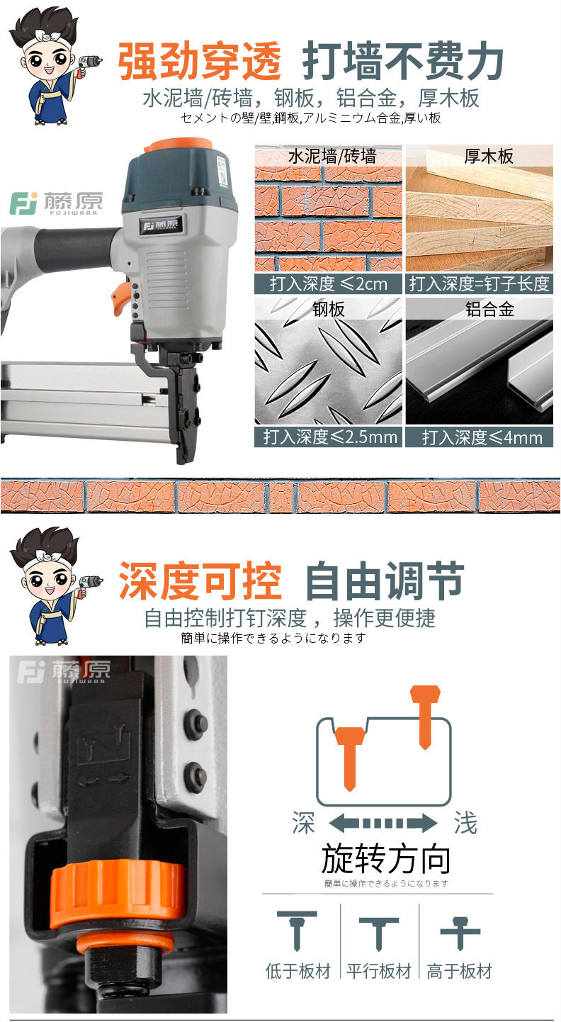 • 후지와라 기술 이중 목적 스틸 네일 건