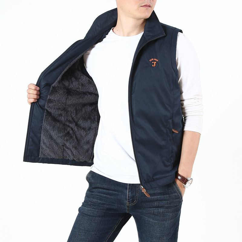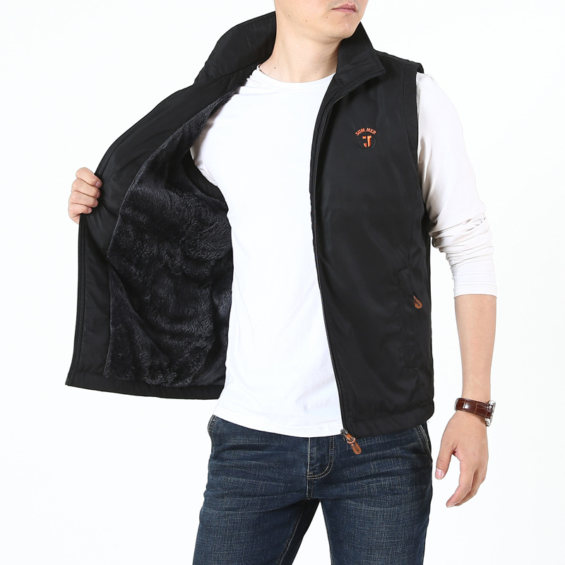 지프 실드 조끼 남자의 가을과 겨울 기모 두꺼운 수직 칼라 속건 방수 따뜻한 외부 착용 조끼 중년 및 노인스토어 가기