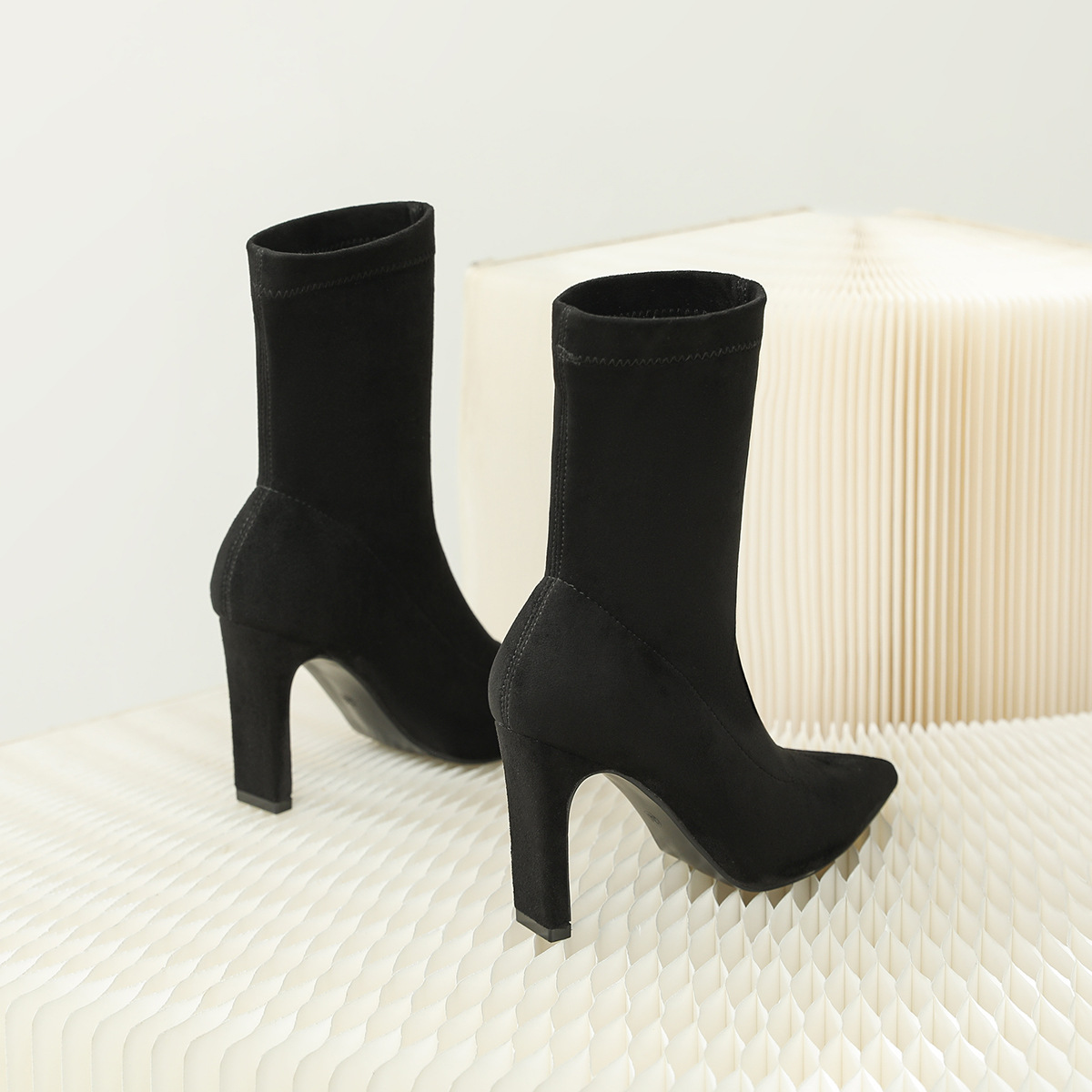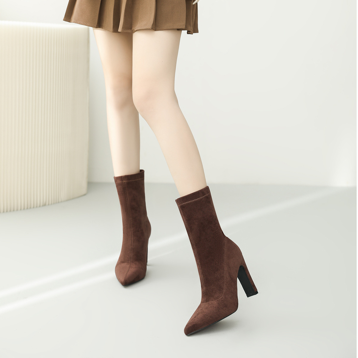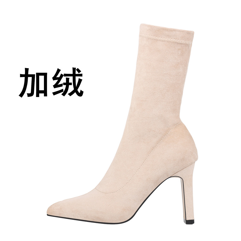 968-1 유럽과 미국의 가을과 겨울 그물 레드 새로운 스웨이드 두꺼운 뒤꿈치 여성 부츠 스퀘어 힐 하이힐 싱글 슈즈 포인트 부츠 어린이스토어 가기
