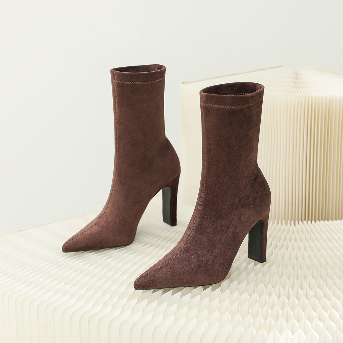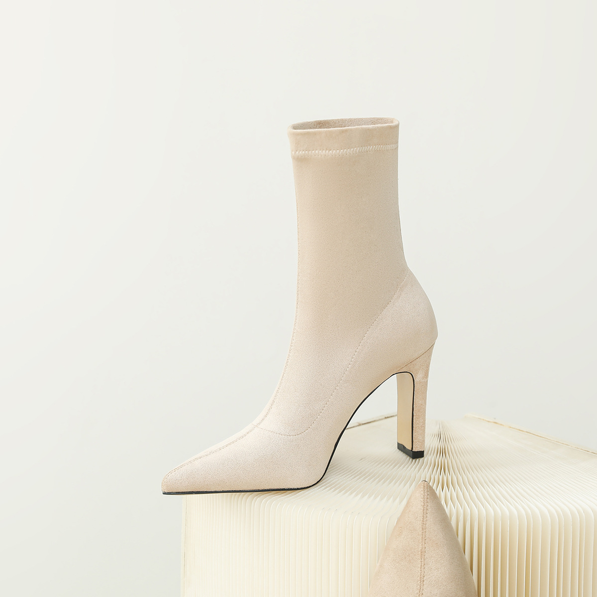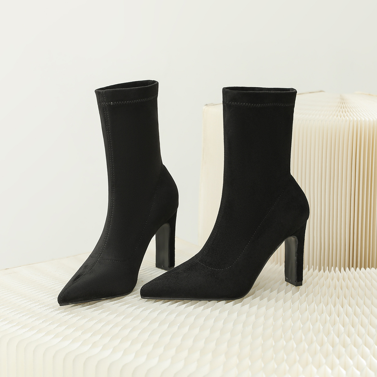 968-1 유럽과 미국의 가을과 겨울 그물 레드 새로운 스웨이드 두꺼운 뒤꿈치 여성 부츠 스퀘어 힐 하이힐 싱글 슈즈 포인트 부츠 어린이스토어 가기