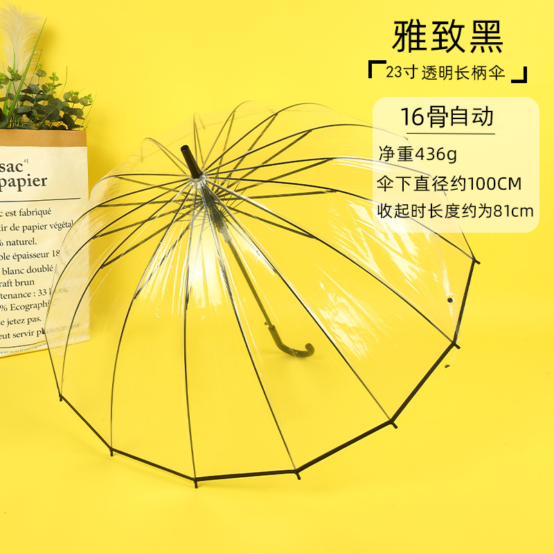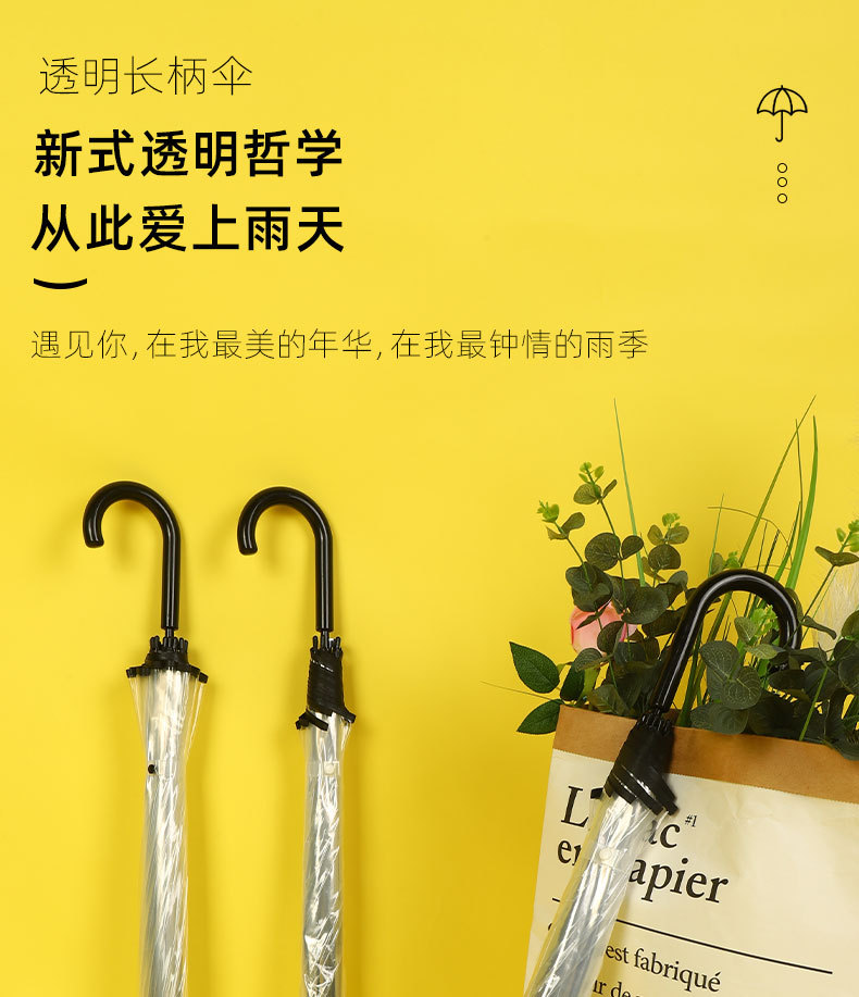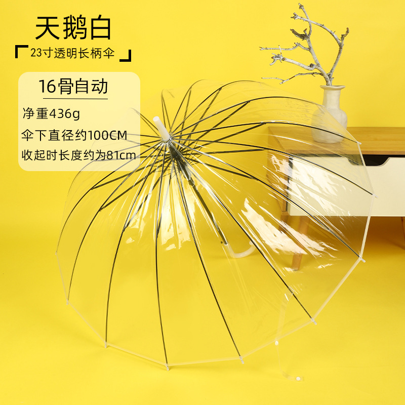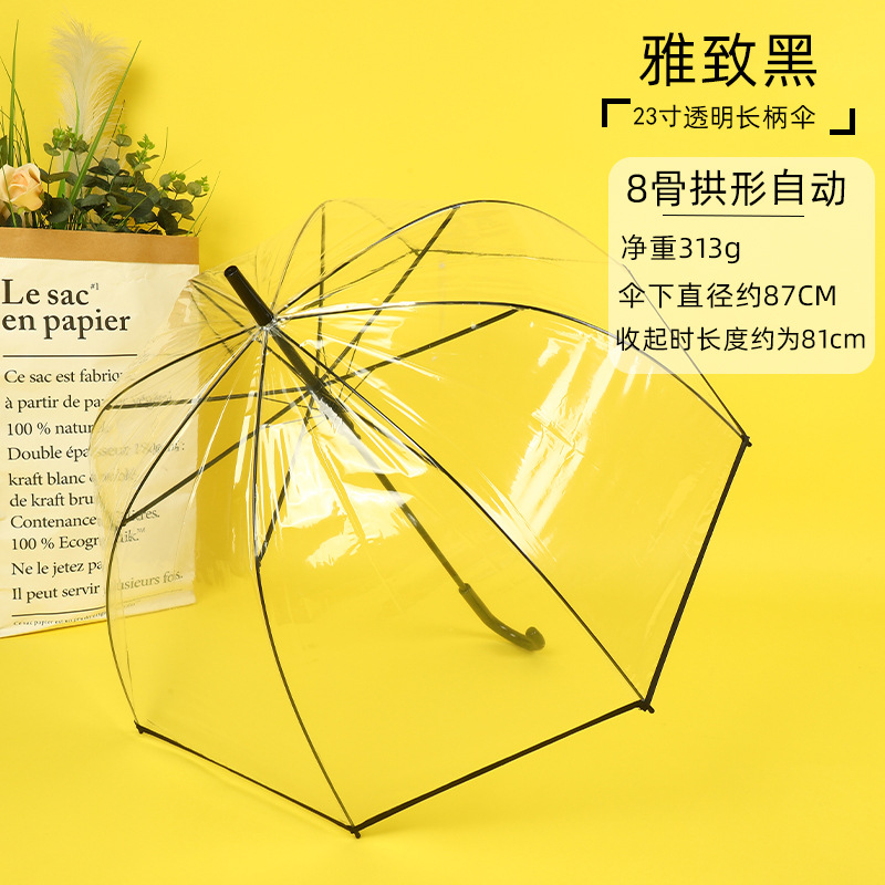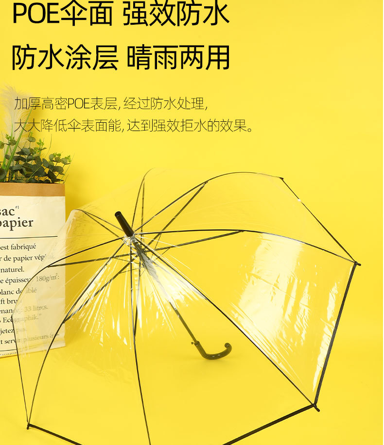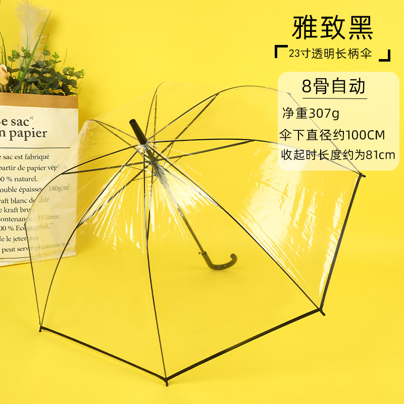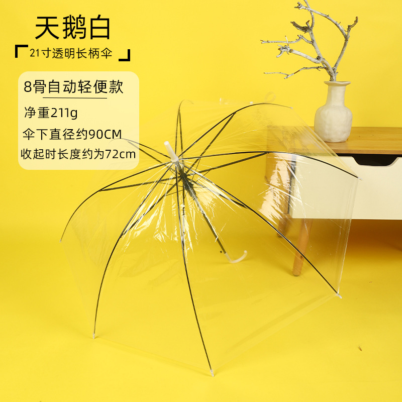 심플 투명 우산 흰색 8단 긴 손잡이 우산 맞춤형 로고 학생용 곡선형 손잡이 직선형 자동 투명 우산 양산 겸용스토어 가기
