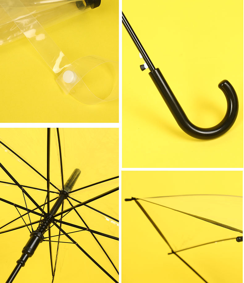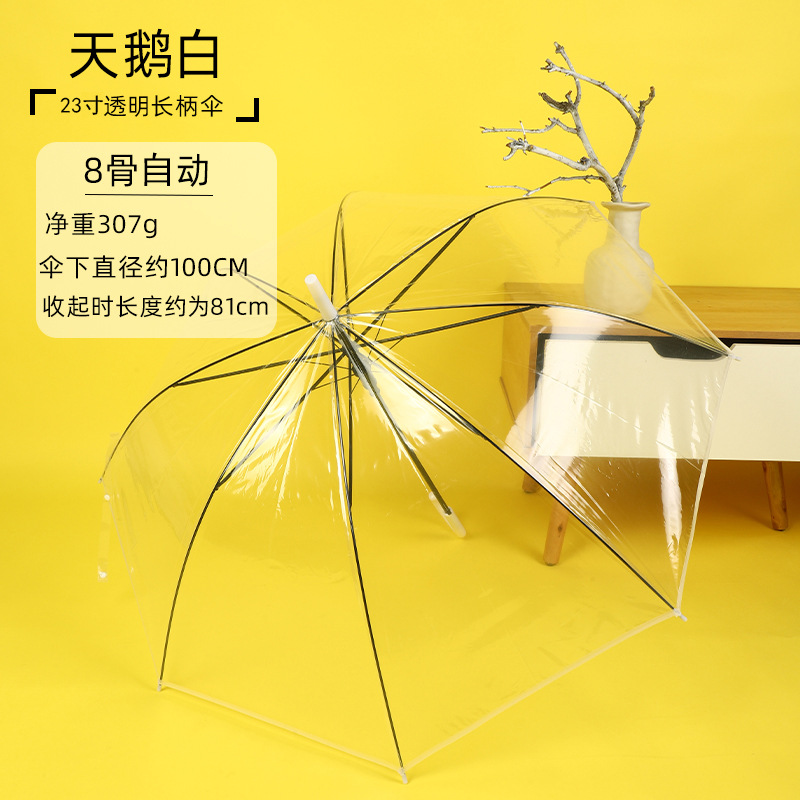 심플 투명 우산 흰색 8단 긴 손잡이 우산 맞춤형 로고 학생용 곡선형 손잡이 직선형 자동 투명 우산 양산 겸용