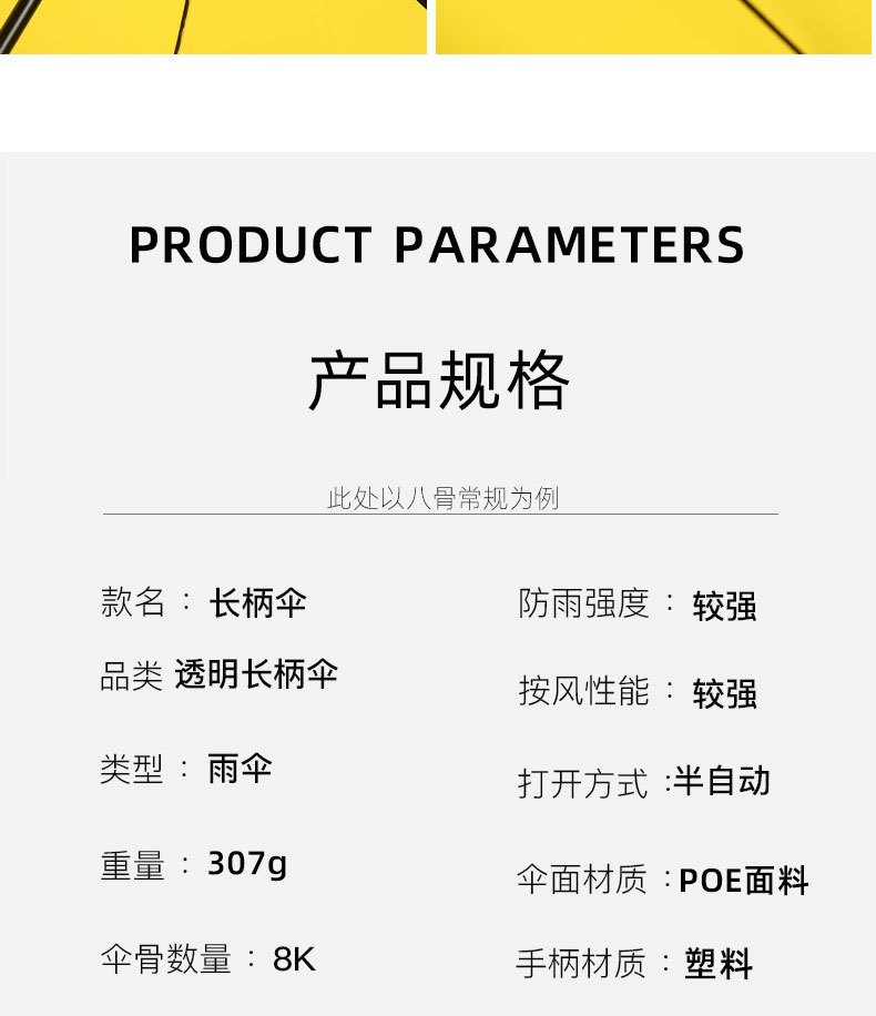 • 21 인치 8 본 솔리드 컬러 투명 스트레이트 봉 우산 (특별 제공)