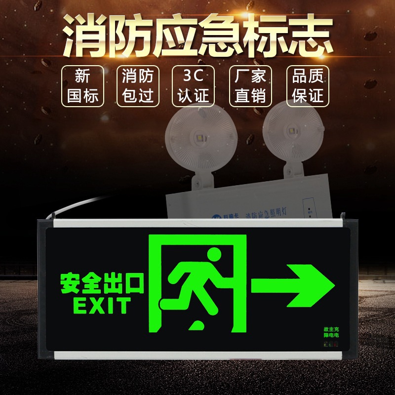 국가 표준 화재 비상 LED 조명 램프 안전 출구 표시등 조명 정전 대피 표시기 양두 비상 조명스토어 가기