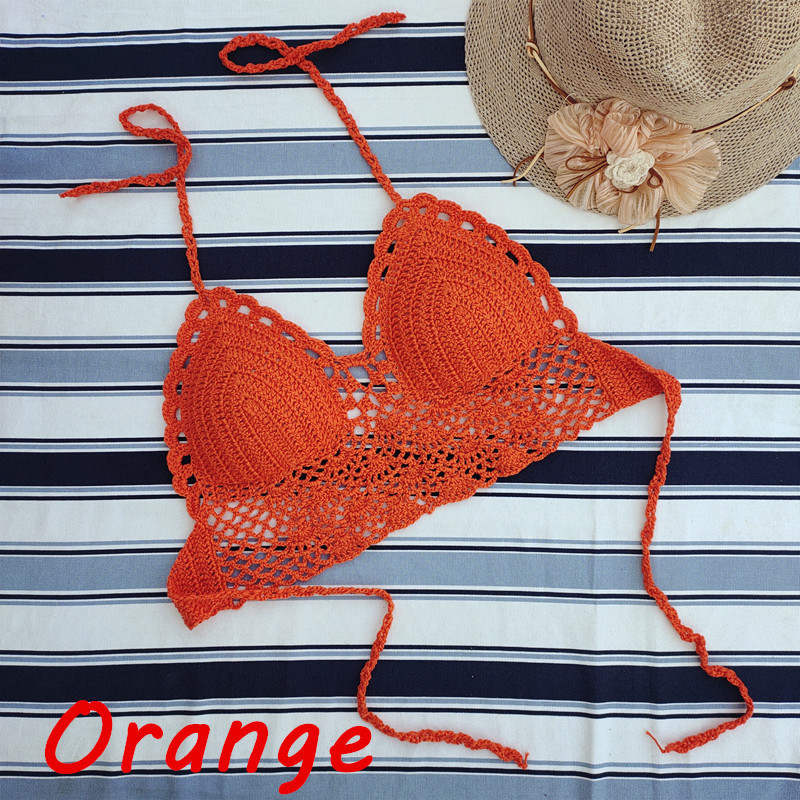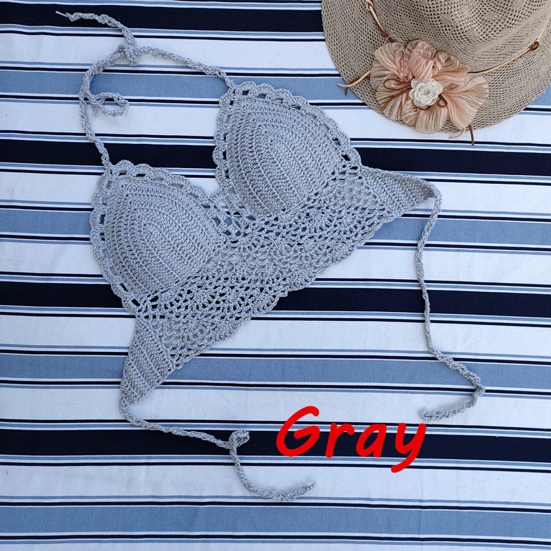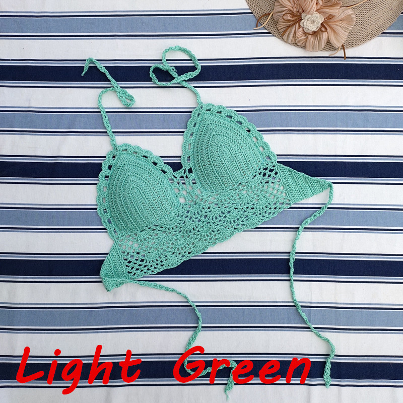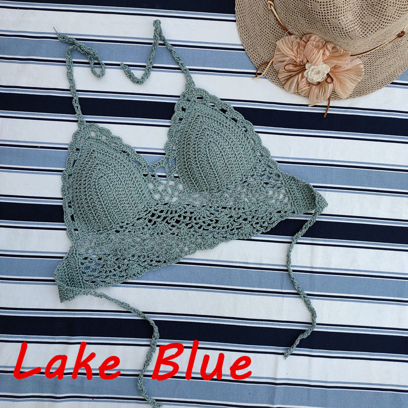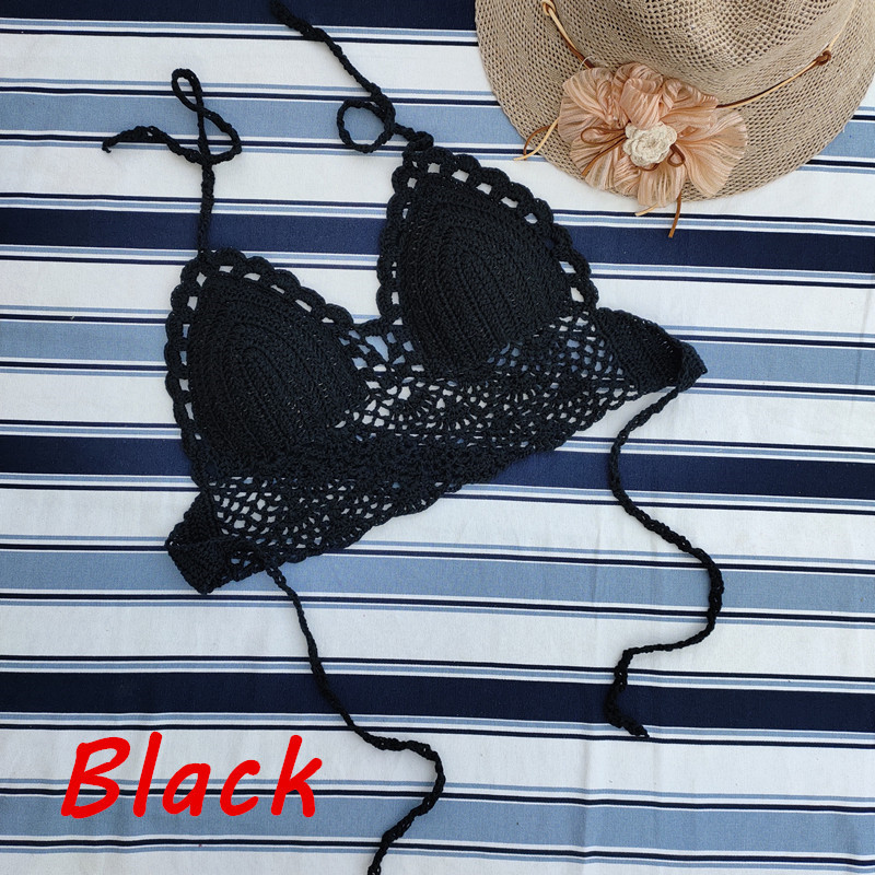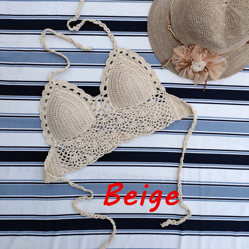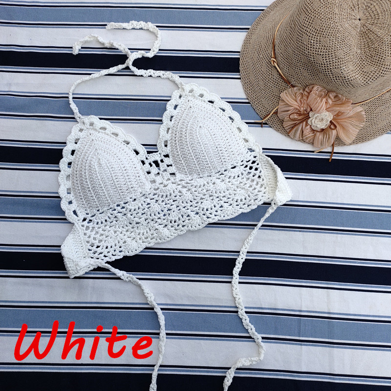 Handmade Crochet Lace Knit Bra Boho Beach Push-up Bikini Halter Cami Tank Crop Top