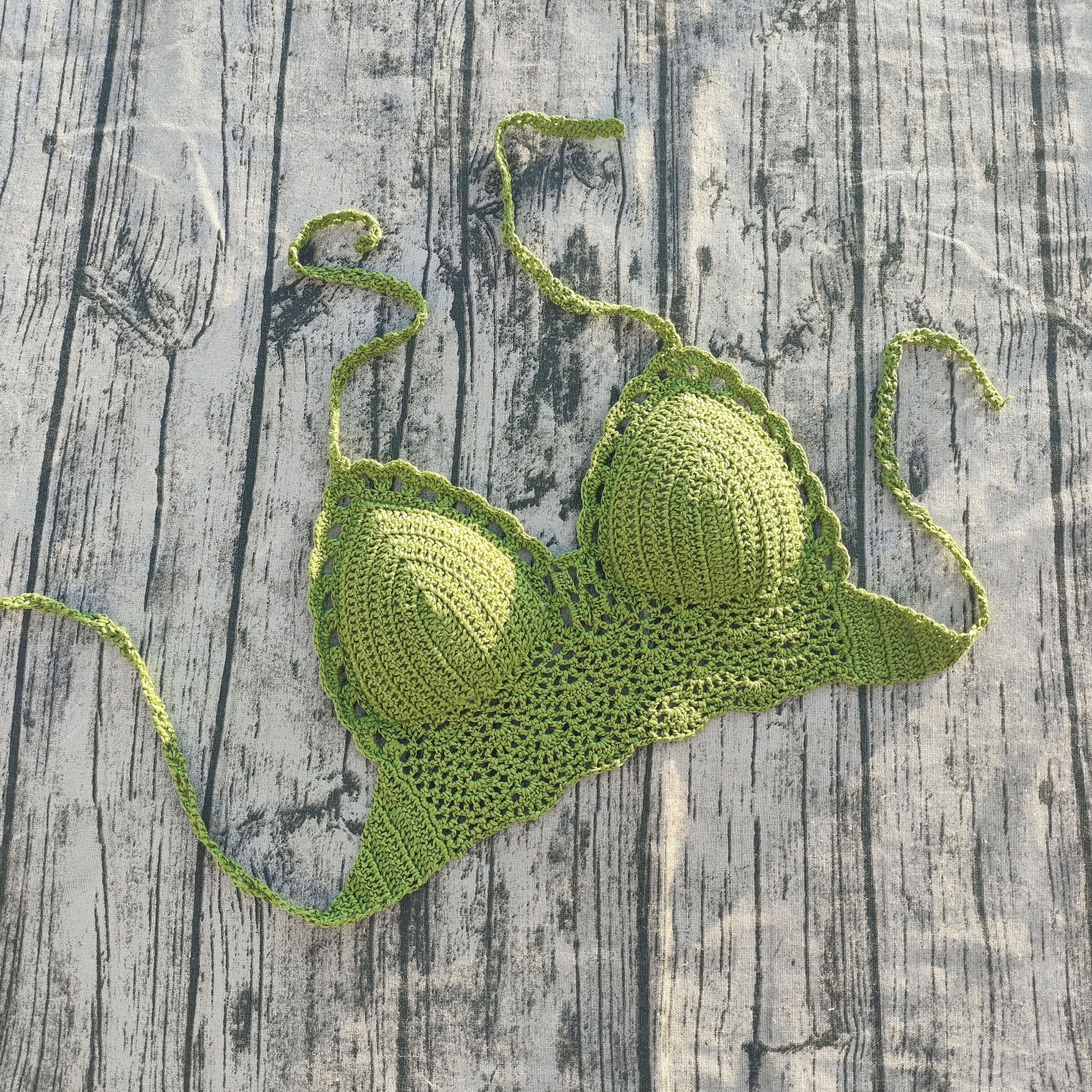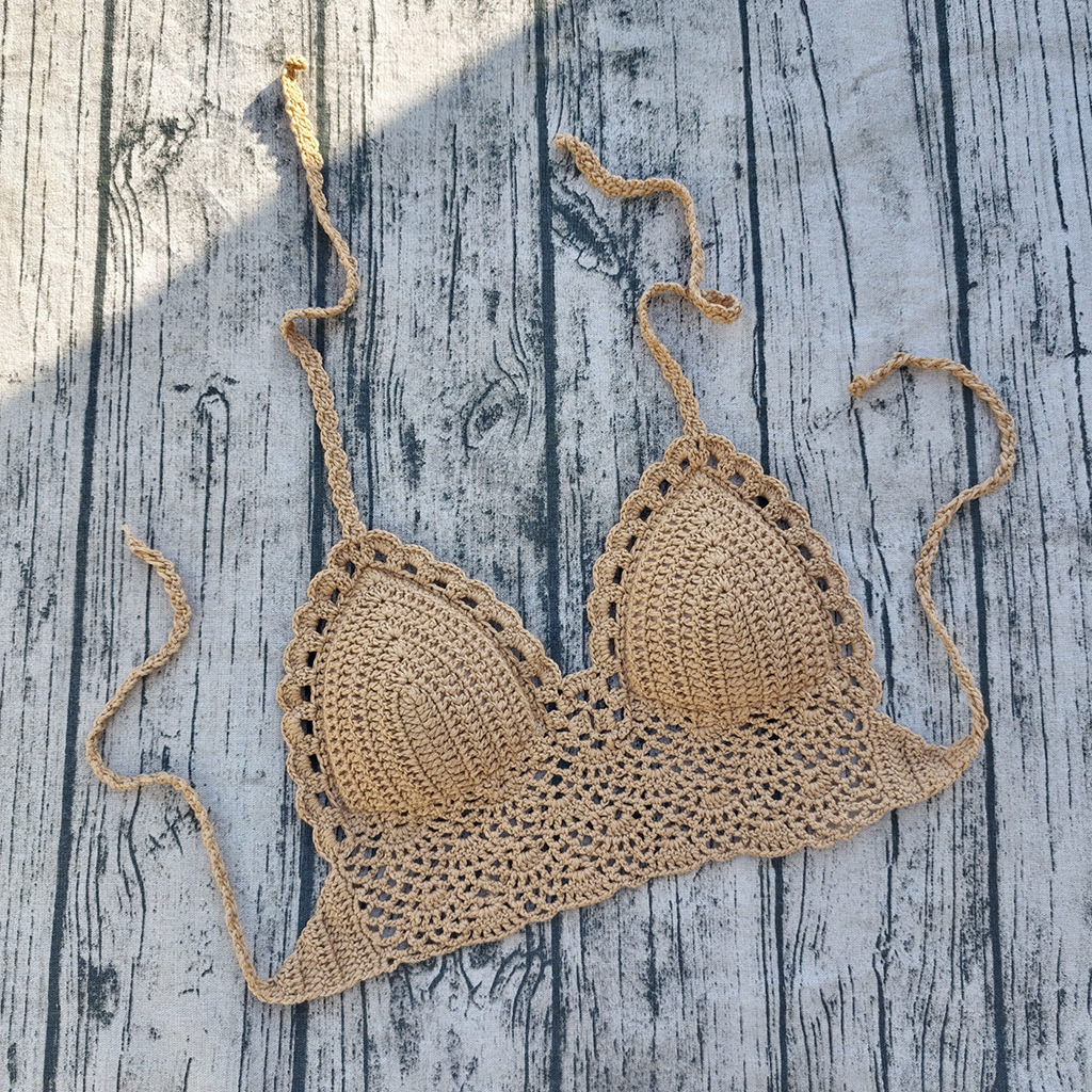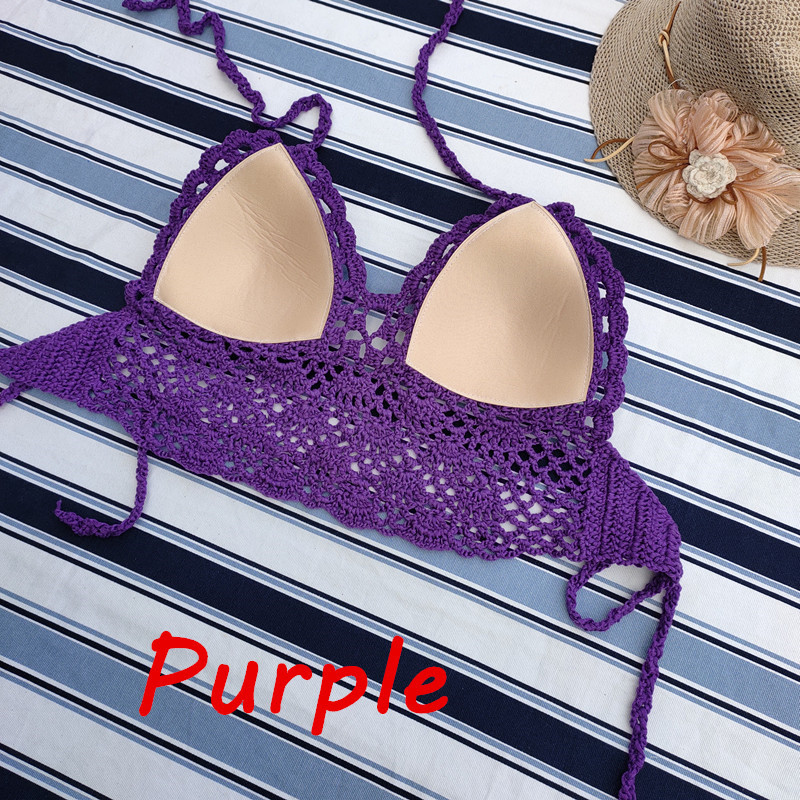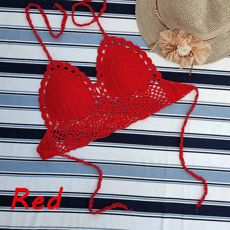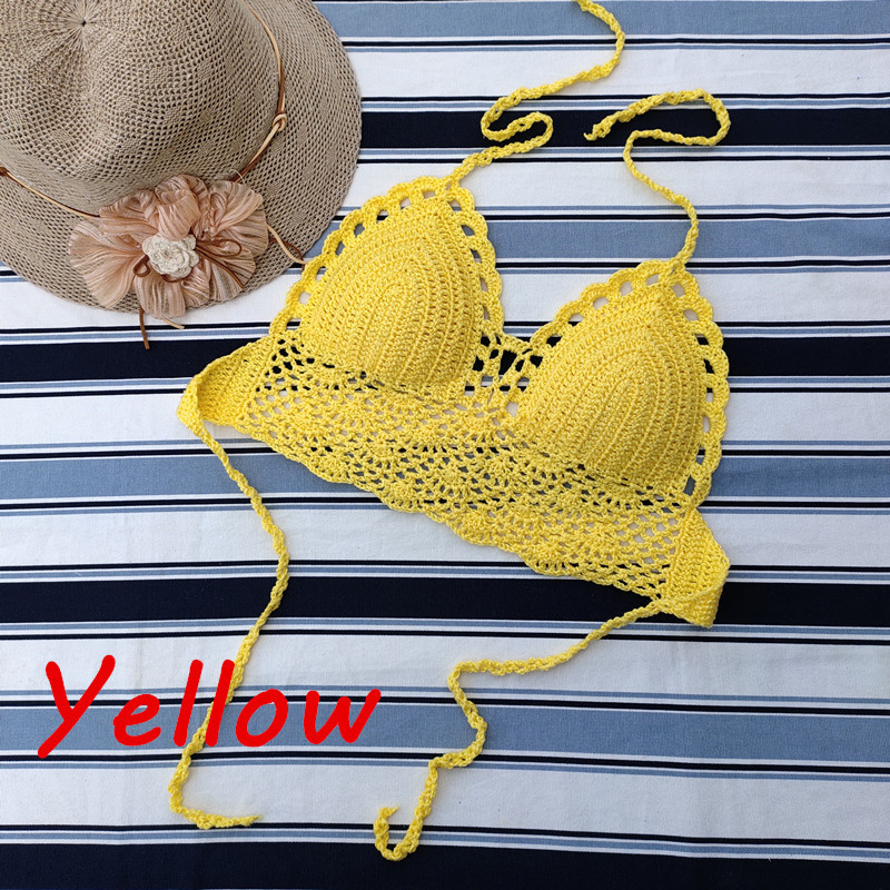 Handmade Crochet Lace Knit Bra Boho Beach Push-up Bikini Halter Cami Tank Crop Top