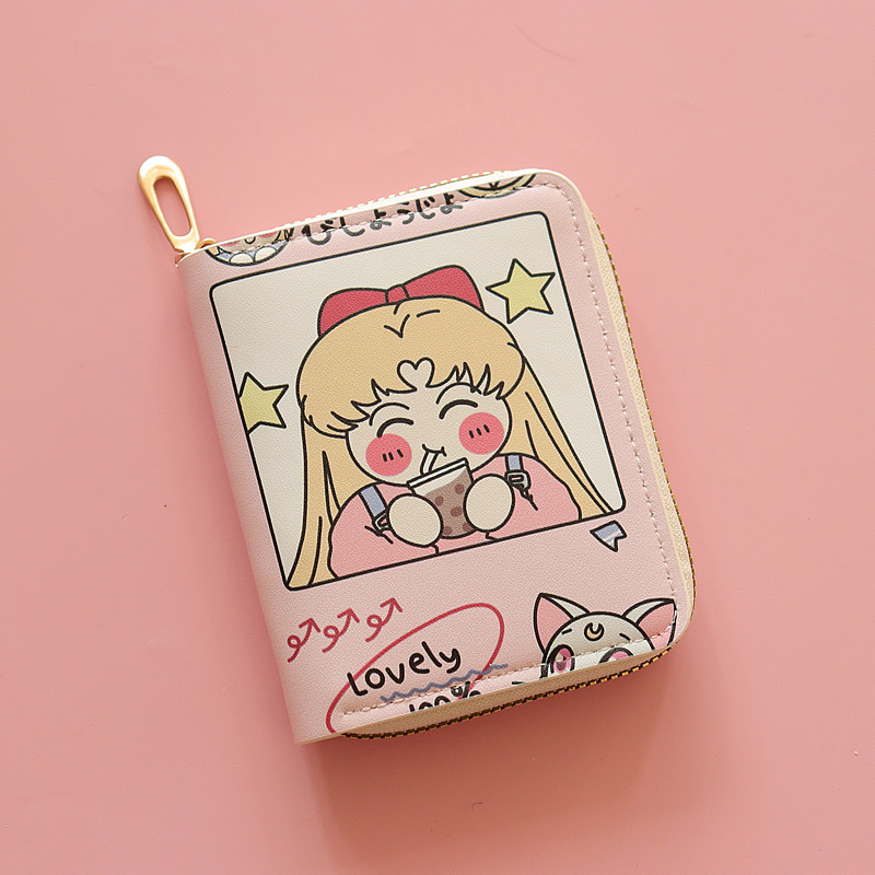 패셔너블한 신상 어린이 소녀 만화 귀여운 짧은 지퍼 지갑 프린트 동전 지갑 소형 대용량 카드 지갑