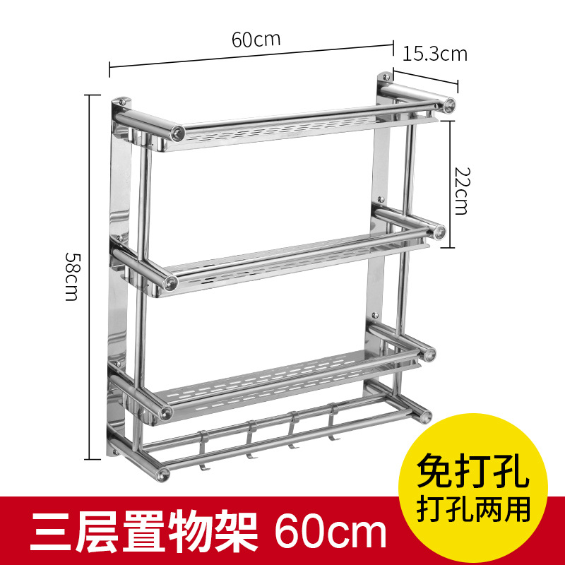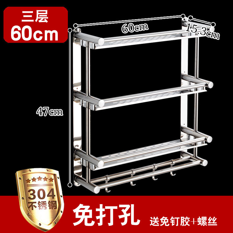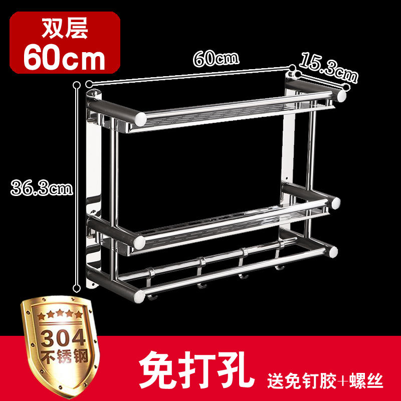 재고 있음 두꺼운 304 스테인리스 스틸 수납 선반 무타공 욕실 단층 수건걸이 욕실 정리 선반 도매