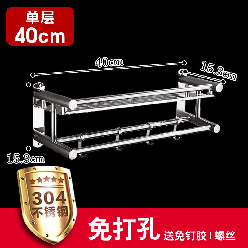 재고 있음 두꺼운 304 스테인리스 스틸 수납 선반 무타공 욕실 단층 수건걸이 욕실 정리 선반 도매스토어 가기