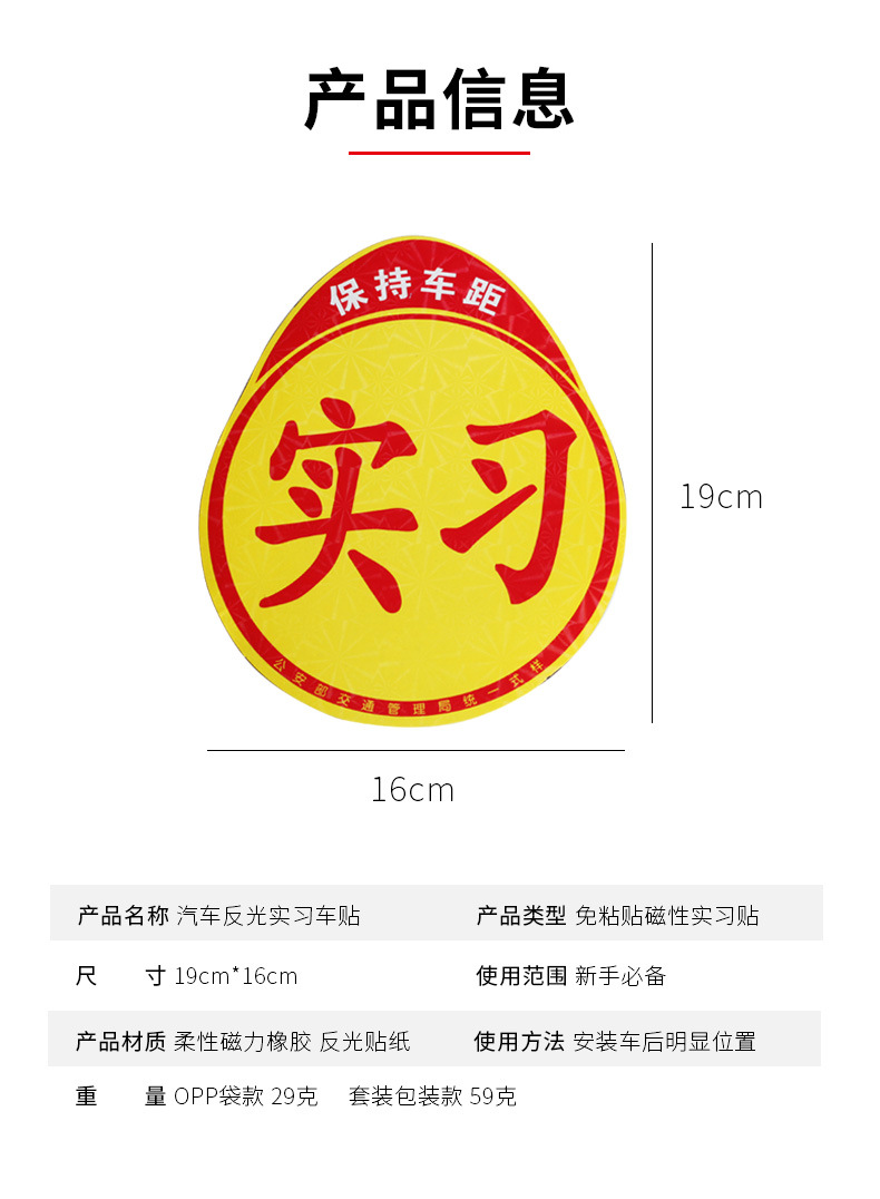 공장 직접 차체 스티커 마그네틱 자동차 반사 인턴쉽 스티커 도로 자동차 인턴쉽 스티커에 16*19cm 초보자스토어 가기