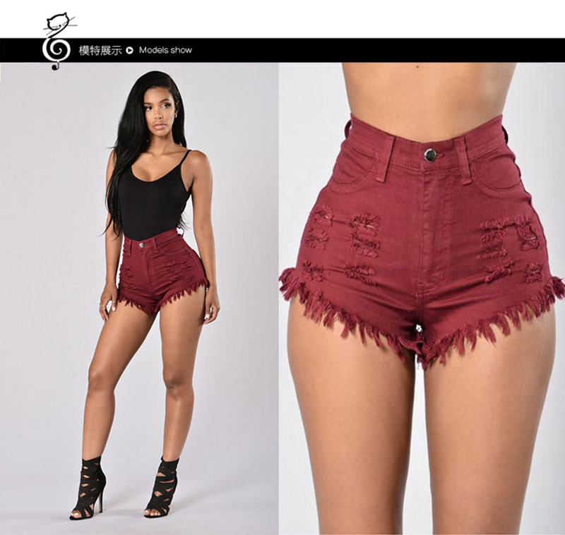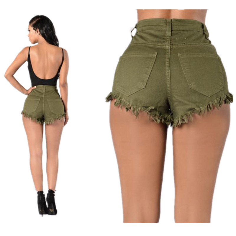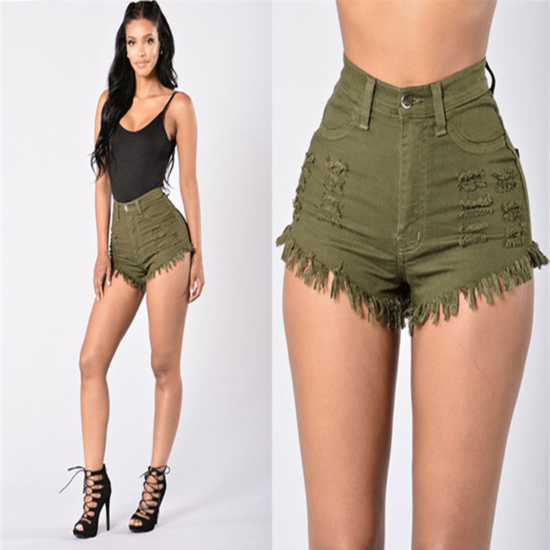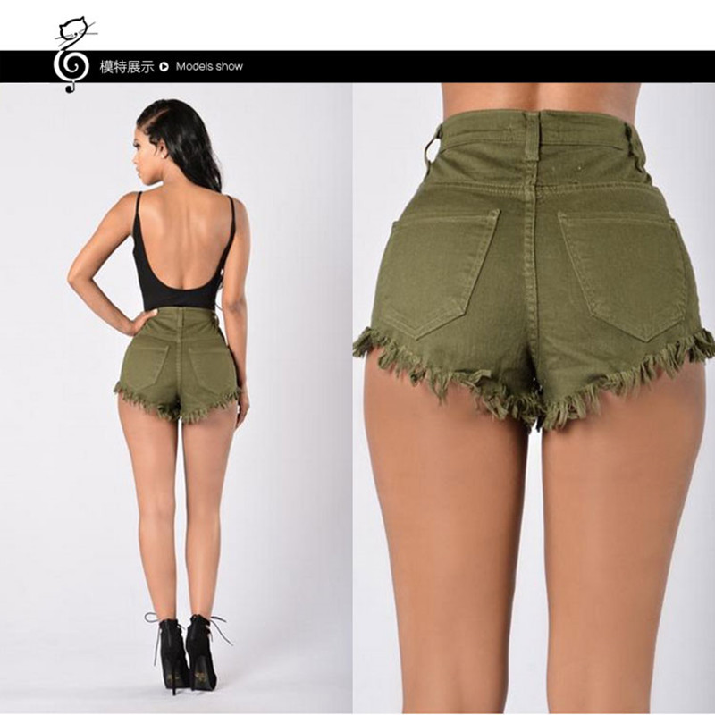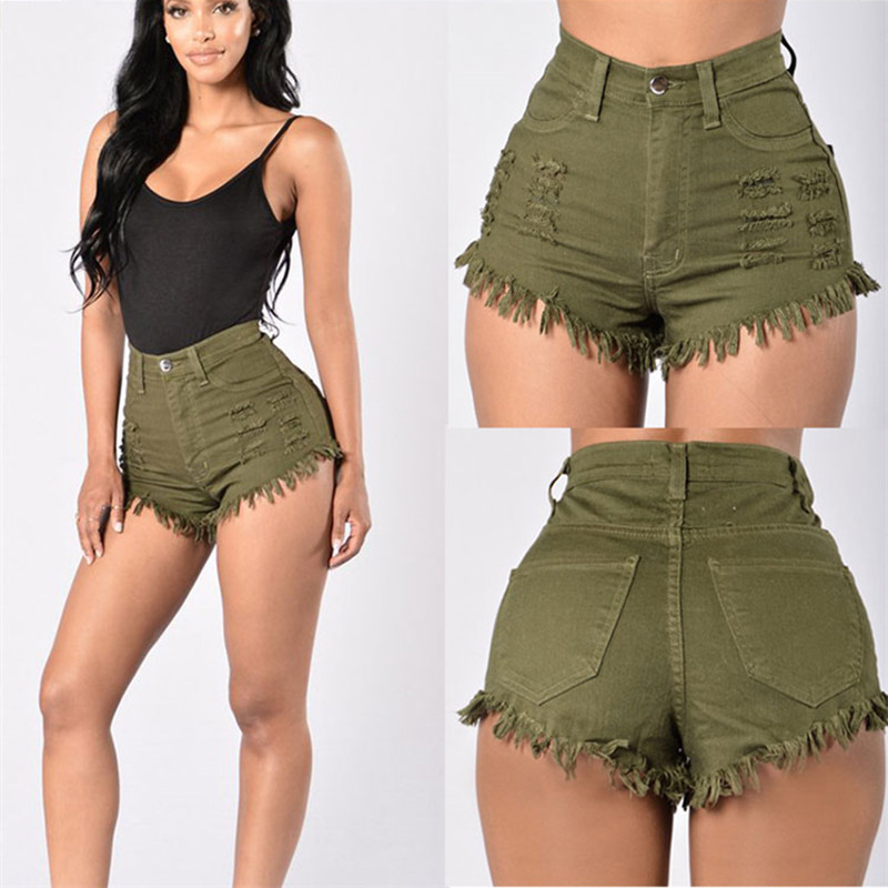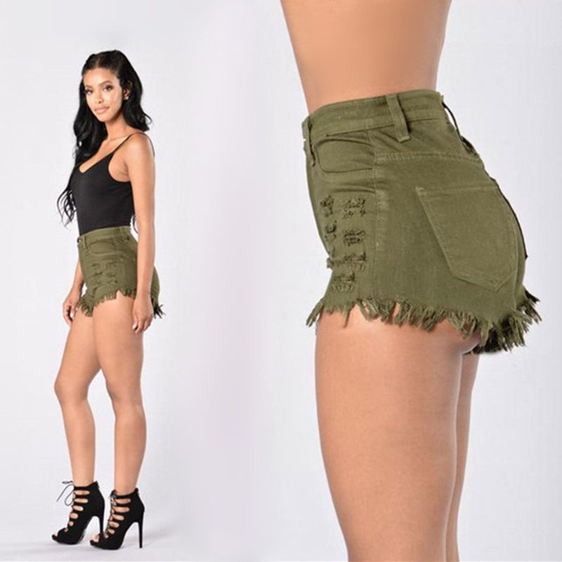 크로스보더 독립 사이트 군녹색 얇은 3부 바지 데미지 데님 반바지 여성 여름 청바지 하이웨이스트 슬림핏스토어 가기