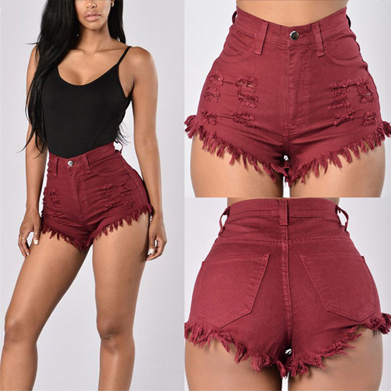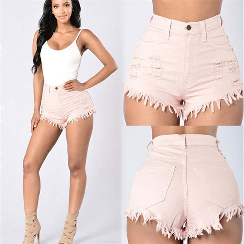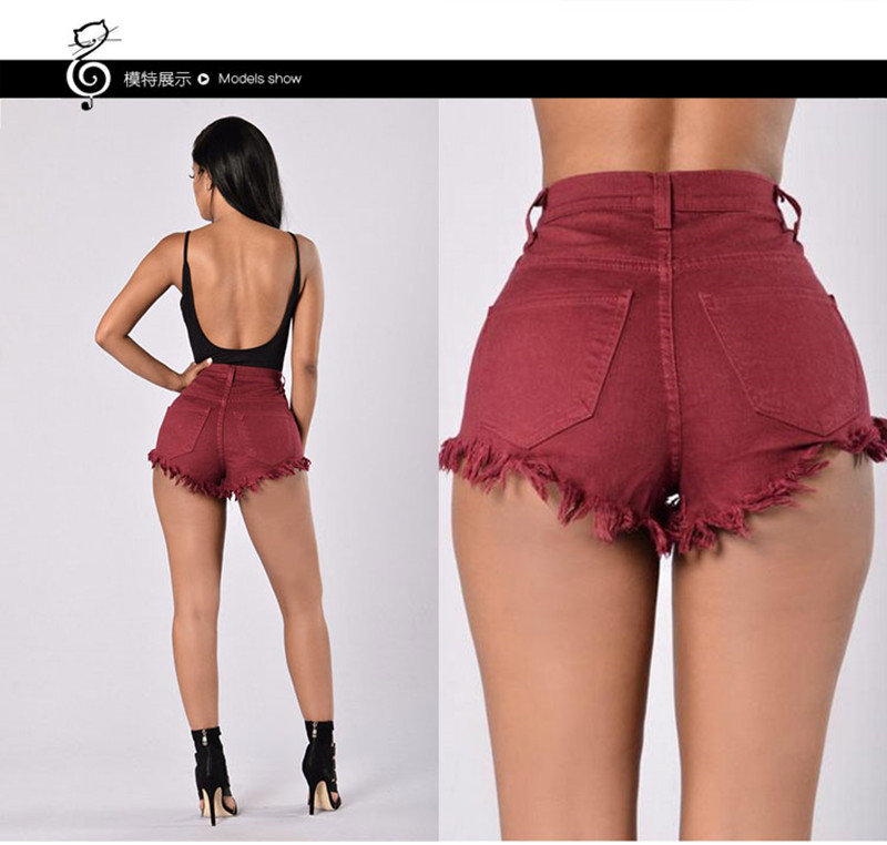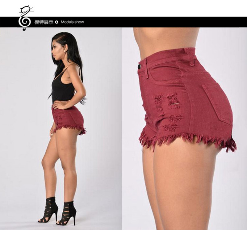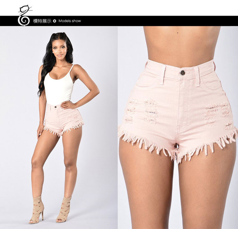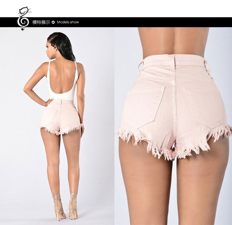 크로스보더 독립 사이트 군녹색 얇은 3부 바지 데미지 데님 반바지 여성 여름 청바지 하이웨이스트 슬림핏스토어 가기