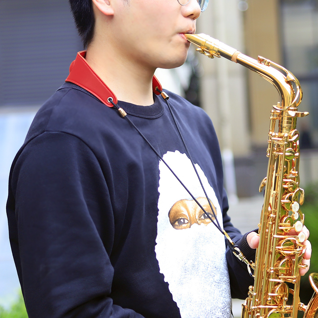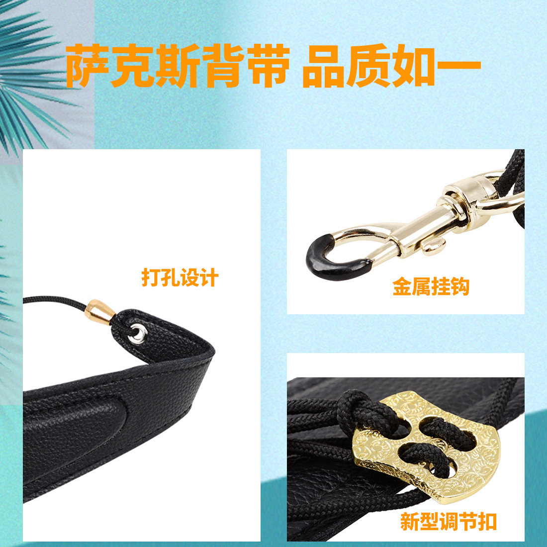用途/卖点:皮革材质柔软舒适、配件彰显工匠精神,用艺术的眼光工艺品的水准来做产品,凸显轻奢气质可上下调节绳子的长短到舒适位置,可旋转挂钩(包皮套)保护萨克斯防止刮花,打孔设计更牢固,皮革材质纹理清晰质感好,双层缝合,线路密、皮革材质 柔软透气。