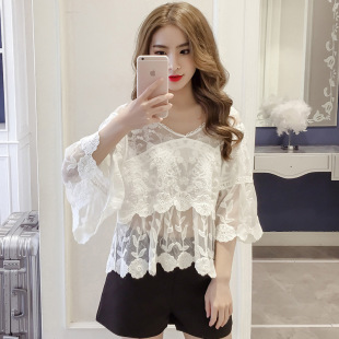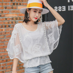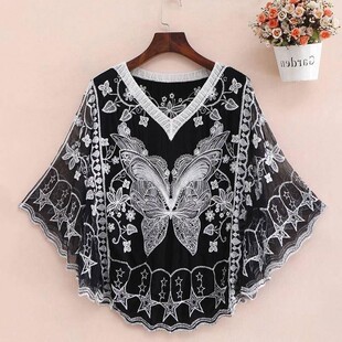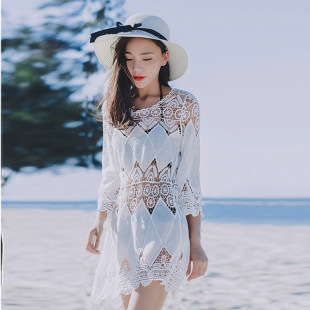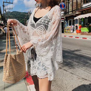 유럽과 미국 대외 무역 레이스 카디건 긴 태양 보호 의류 여성용 자수 중공 크로 셰 뜨개질 반 소매 해변 해변 커버스토어 가기