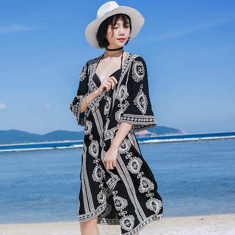 유럽과 미국 대외 무역 레이스 카디건 긴 태양 보호 의류 여성용 자수 중공 크로 셰 뜨개질 반 소매 해변 해변 커버