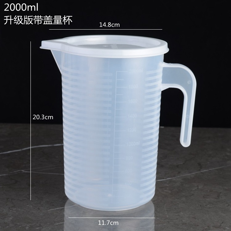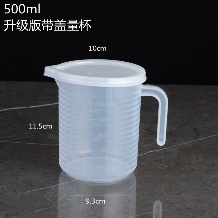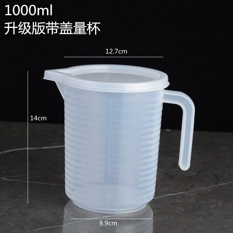 두꺼운 플라스틱 측정 컵 스케일 및 뚜껑 투명 베이킹 우유 차 주방 측정 컵 대용량 다중 사양 옵션스토어 가기