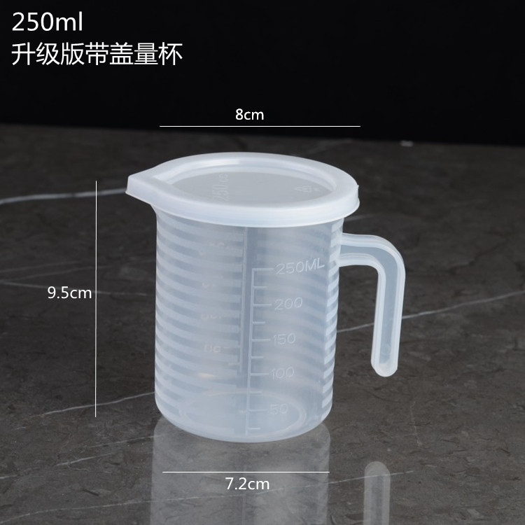 두꺼운 플라스틱 측정 컵 스케일 및 뚜껑 투명 베이킹 우유 차 주방 측정 컵 대용량 다중 사양 옵션