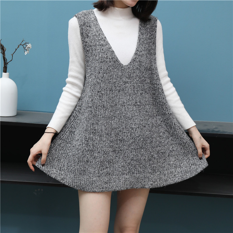 undefined韩版大码针织马甲女 2020春季新款时尚纯色宽松无袖v领套头毛衣女