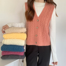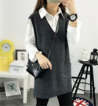 한국 스타일 플러스 사이즈 니트 조끼 여자의 2022 봄 새로운 유행 단색 느슨한 민소매 V-넥 풀오버 스웨터스토어 가기