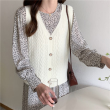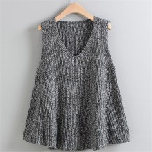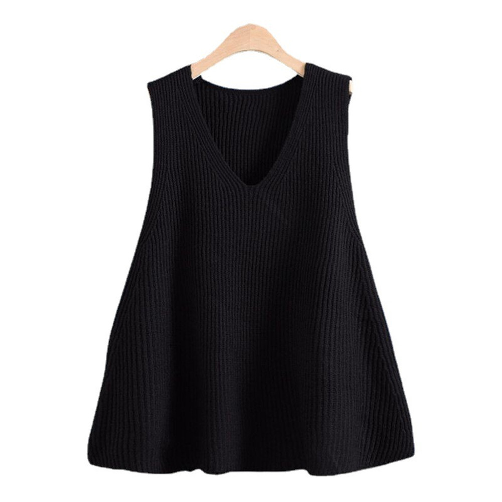 한국 스타일 플러스 사이즈 니트 조끼 여자의 2022 봄 새로운 유행 단색 느슨한 민소매 V-넥 풀오버 스웨터