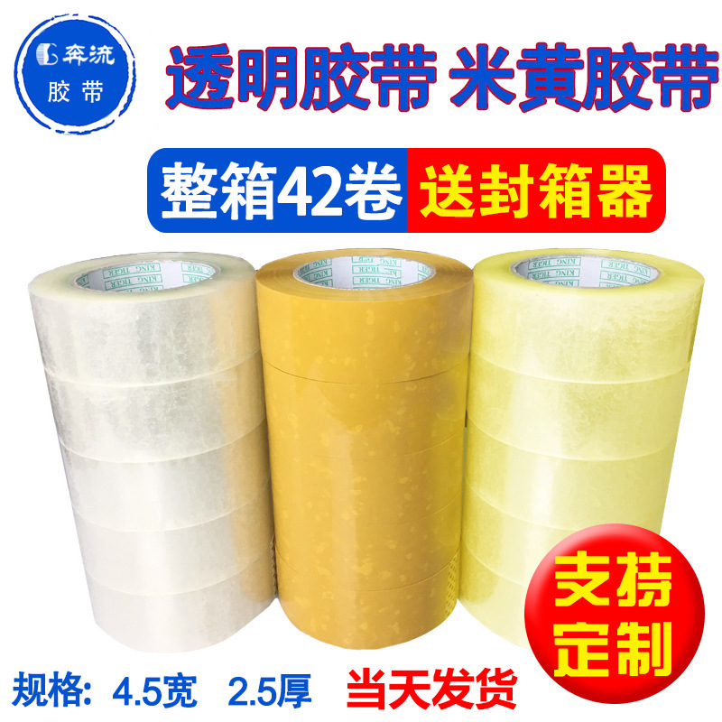 直销宽4.5CM厚2.5CM包装胶带快递封箱胶带打包带米黄透明胶带批发