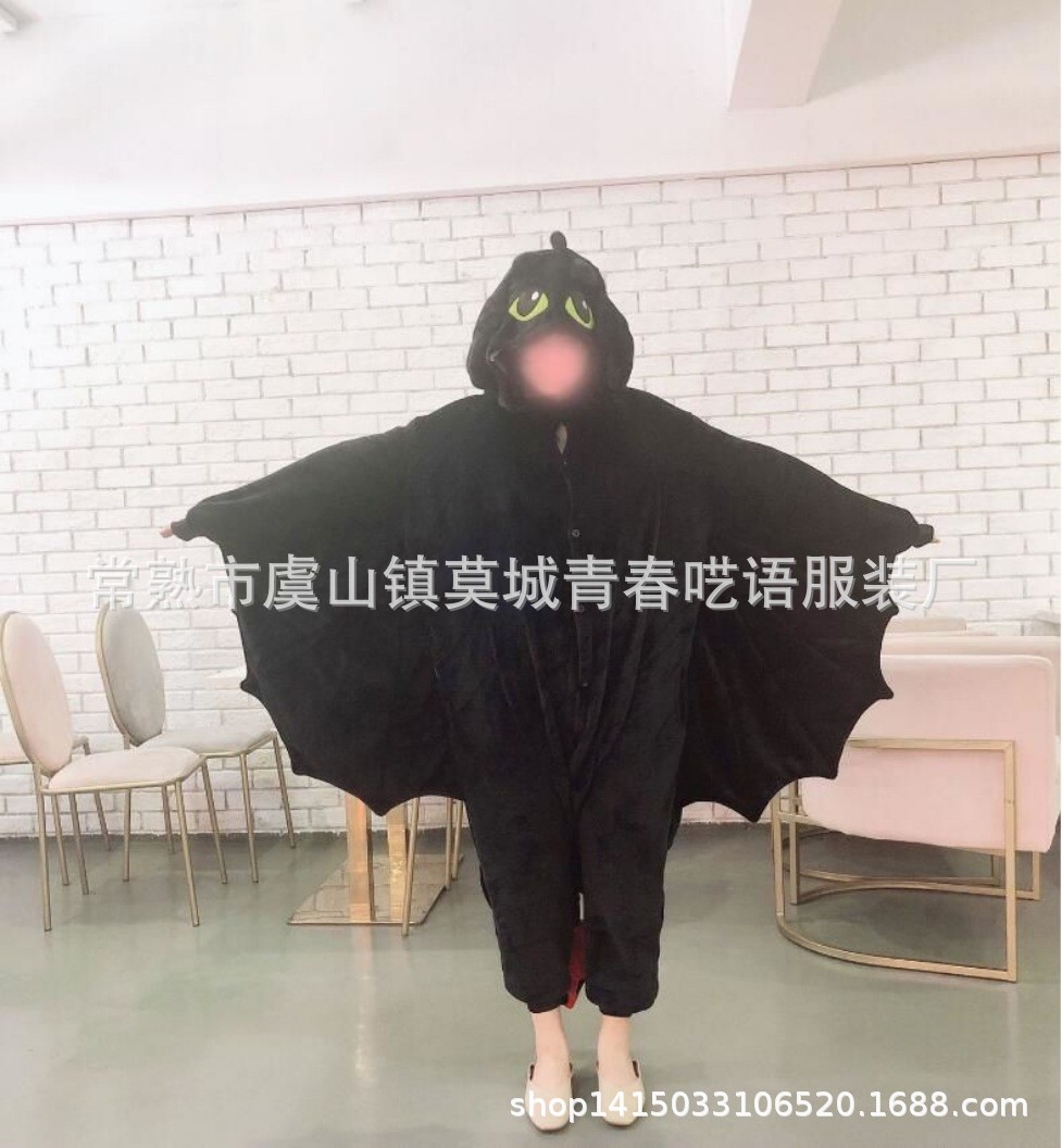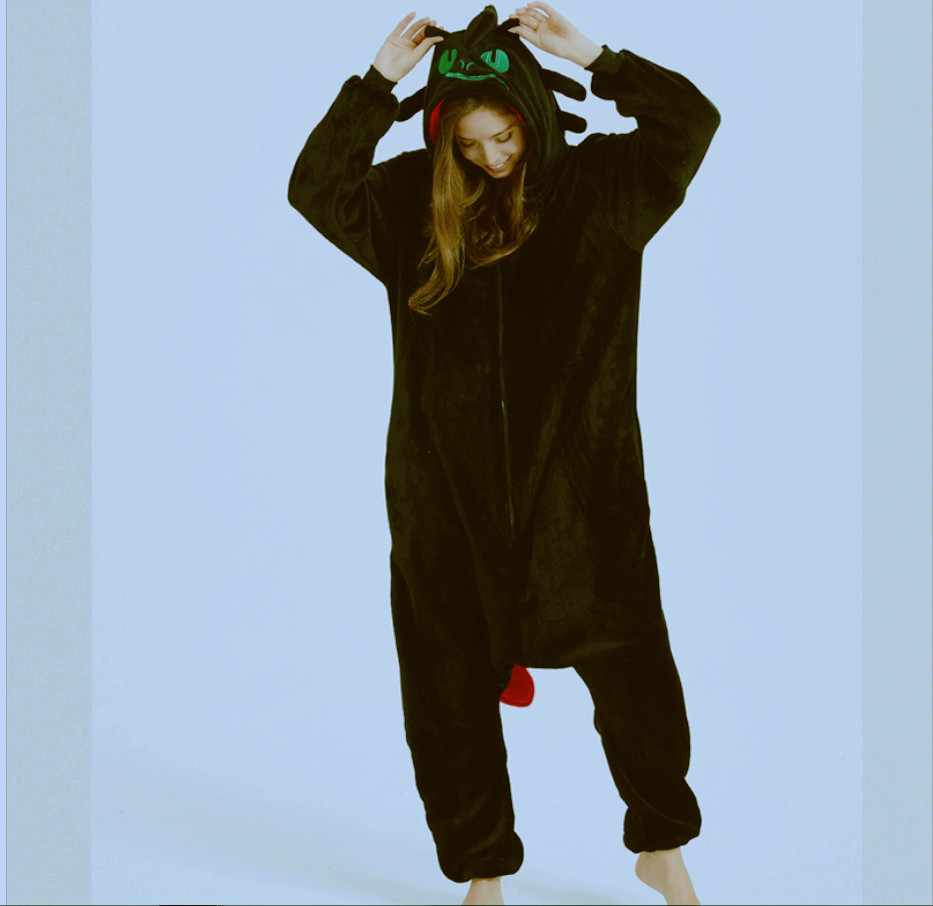 AliExpress 대외 무역 제조 업체 도매 검은 드래곤 만화 이빨없는 동물 원피스 잠옷 플란넬 남성과 여성의 가정 의류