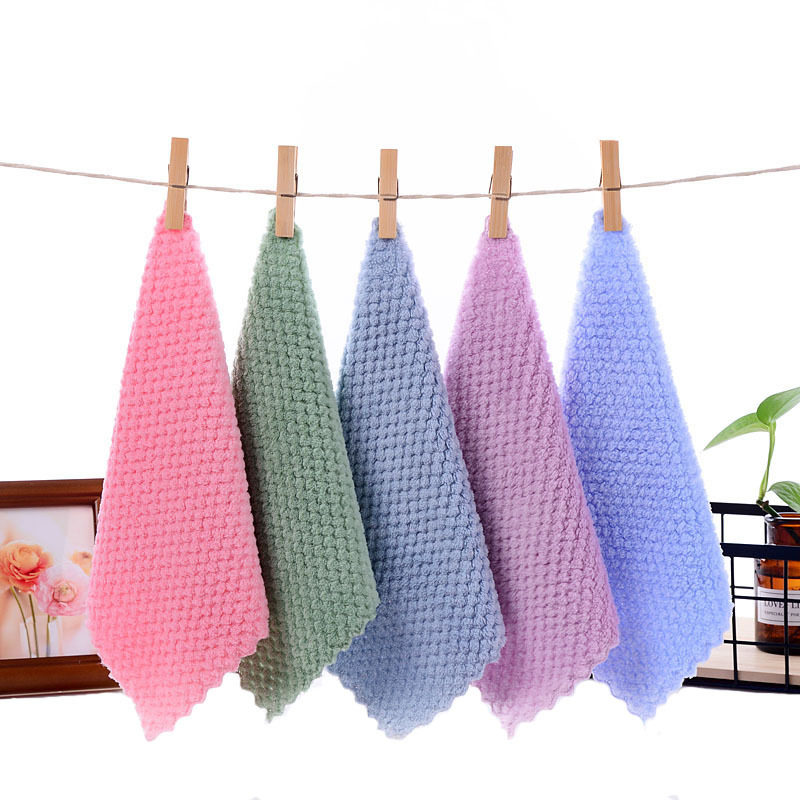 공장 재고 도매 산호 양털 25*25 작은 사각형 수건 주방 수건 청소 수건 흡수성