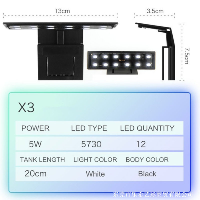 尺寸:可夹鱼缸厚度约为0.5cm以内,适合23~60cm的鱼缸。