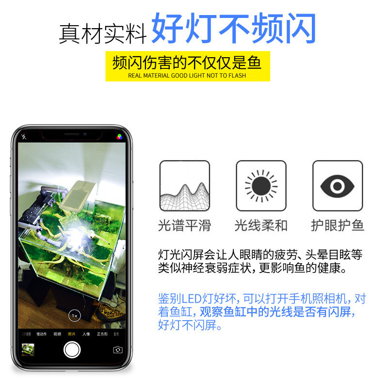 2:确保在喂鱼,换水,放置或者移动夹灯以及其他水族器材之前切断电源,避免水滴在灯上.