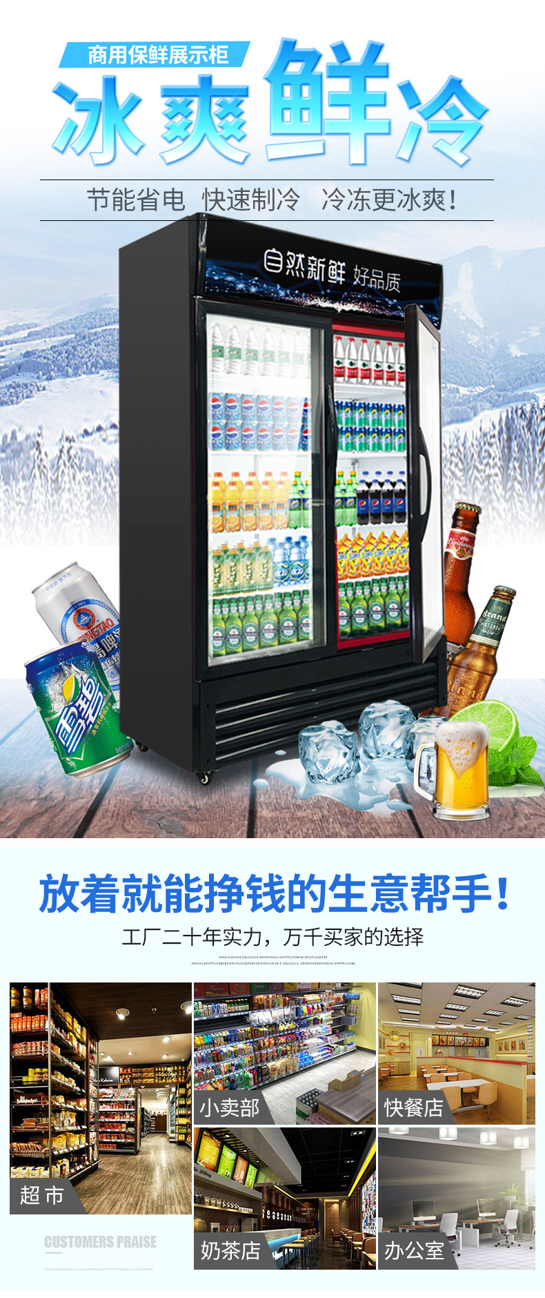 핀다 수직 싱글 도어 푸시 더블 도어 3 도어 유리 음료 슈퍼마켓 신선한 공냉식 디스플레이 캐비닛 냉장 차가운 음료