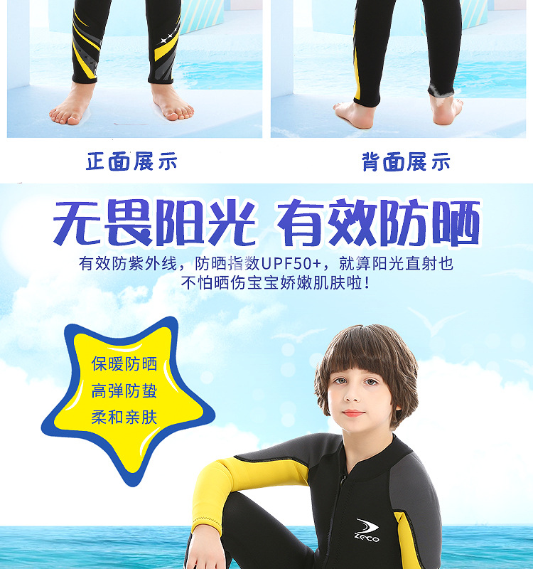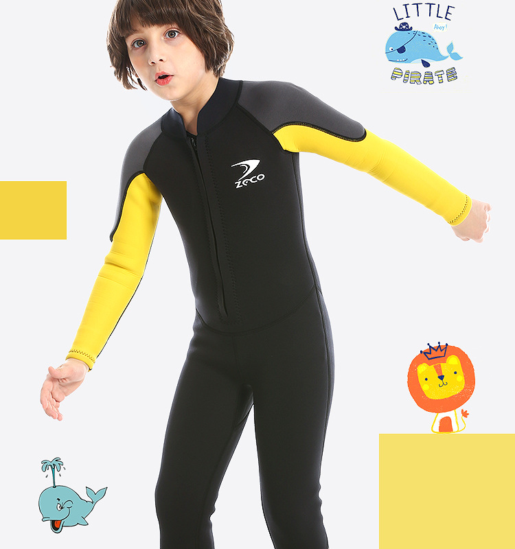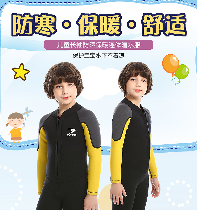 새로운 어린이 다이빙 세트 2.5mm 수영 세트 소년의 긴 소매 두꺼운 따뜻한 자외선 차단제 서핑 스노클링 세트