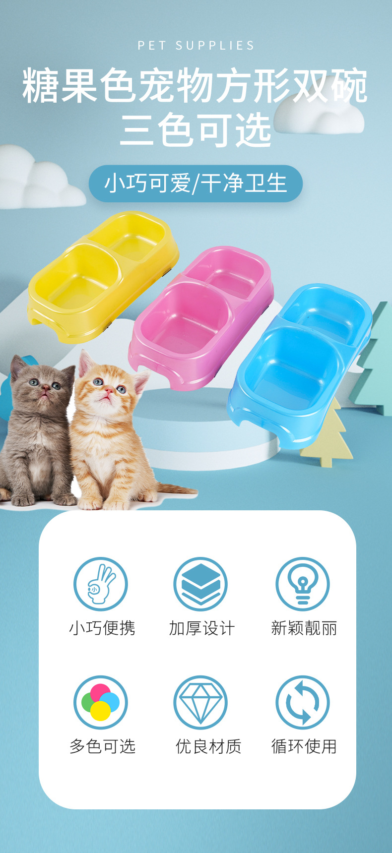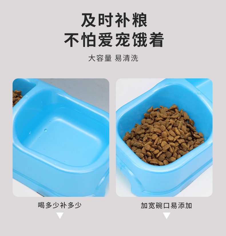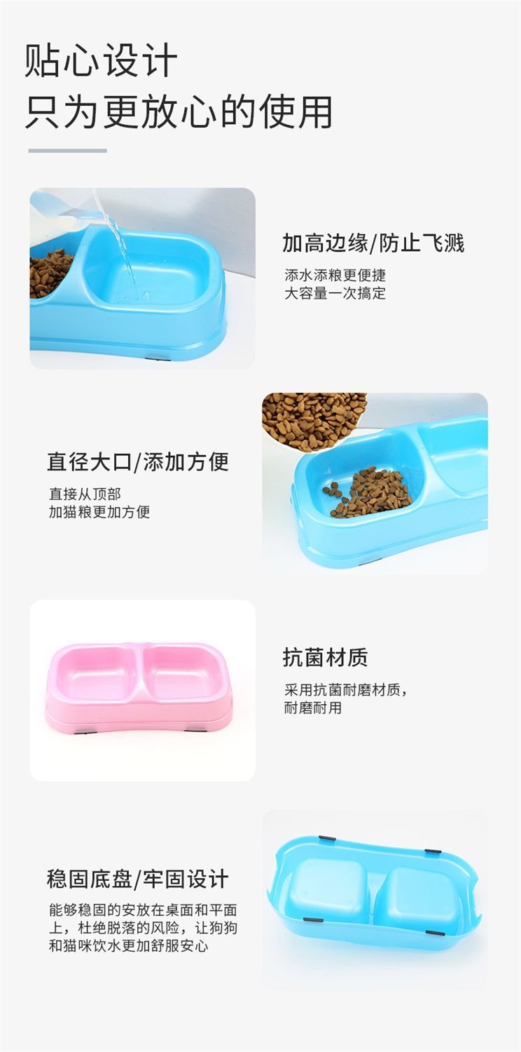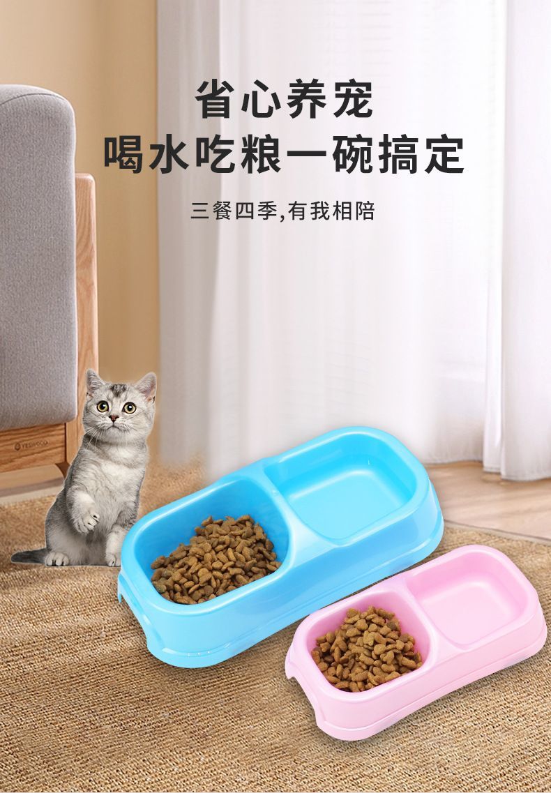 국경을 넘는 고양이 밥그릇, 고양이 플라스틱 밥그릇, 이중 밥그릇, 애완동물 식품 등급 식기, 물과 사료가 하나로 통합된 높이가 있는 강아지용 식기