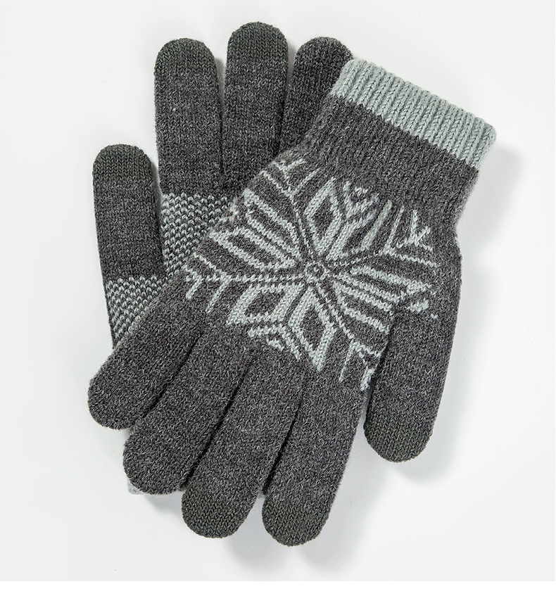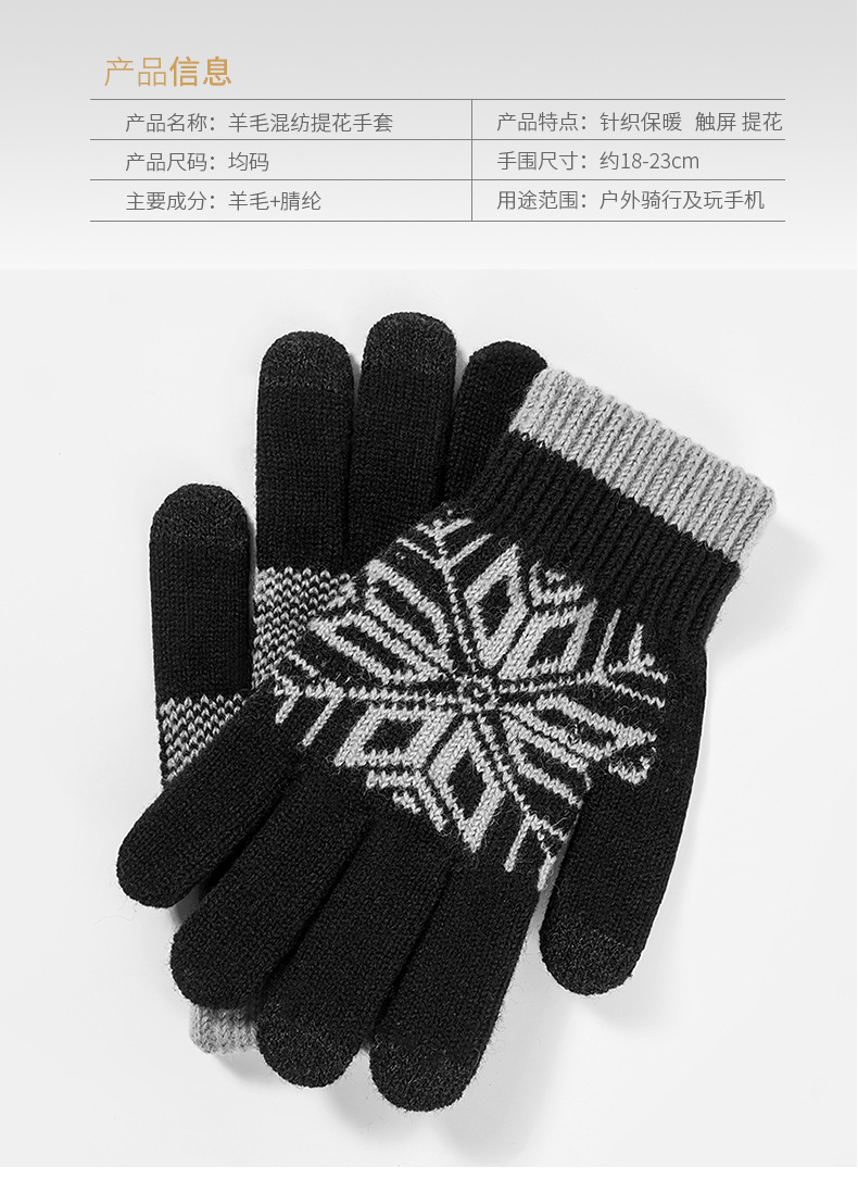• 冬季时尚雪花触摸屏手套 保暖针织触控手套 加绒加厚骑行手套现货4.24.00
