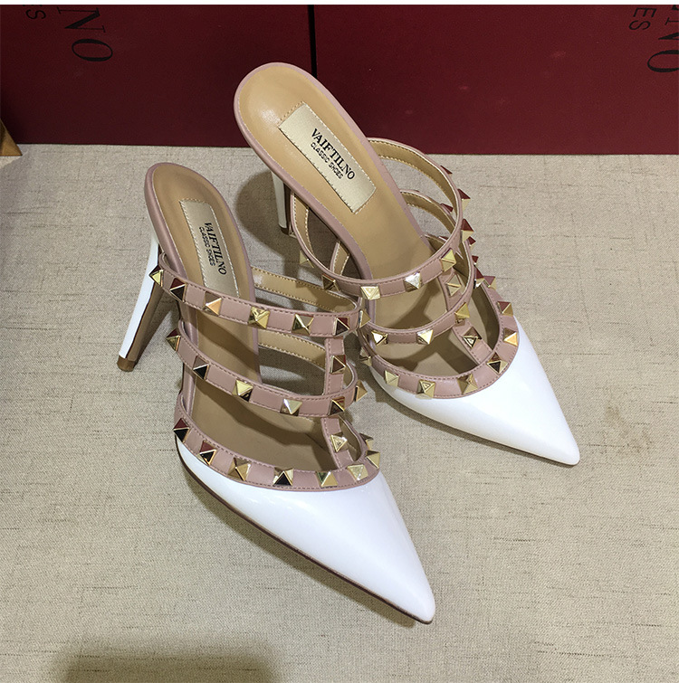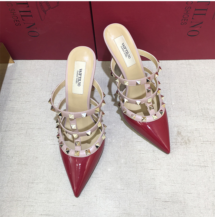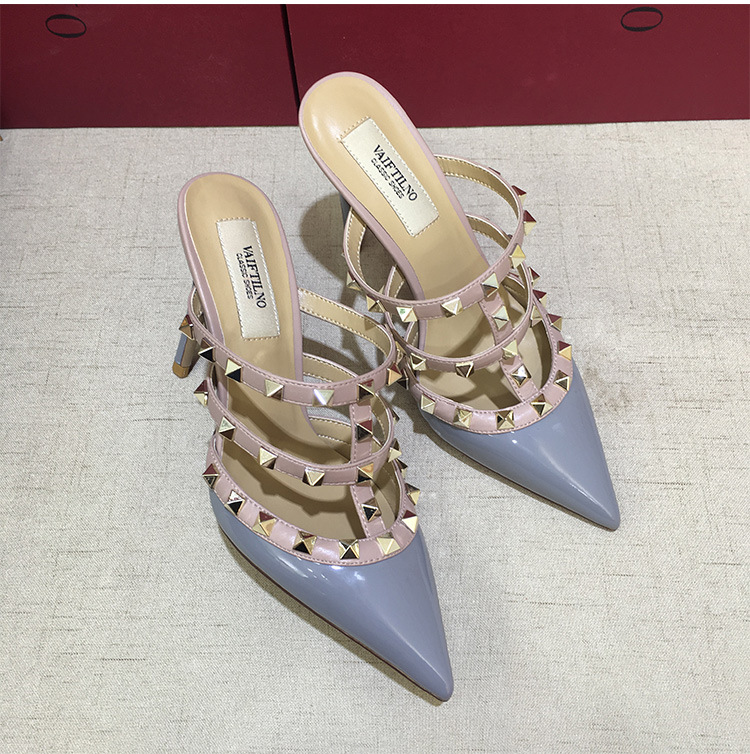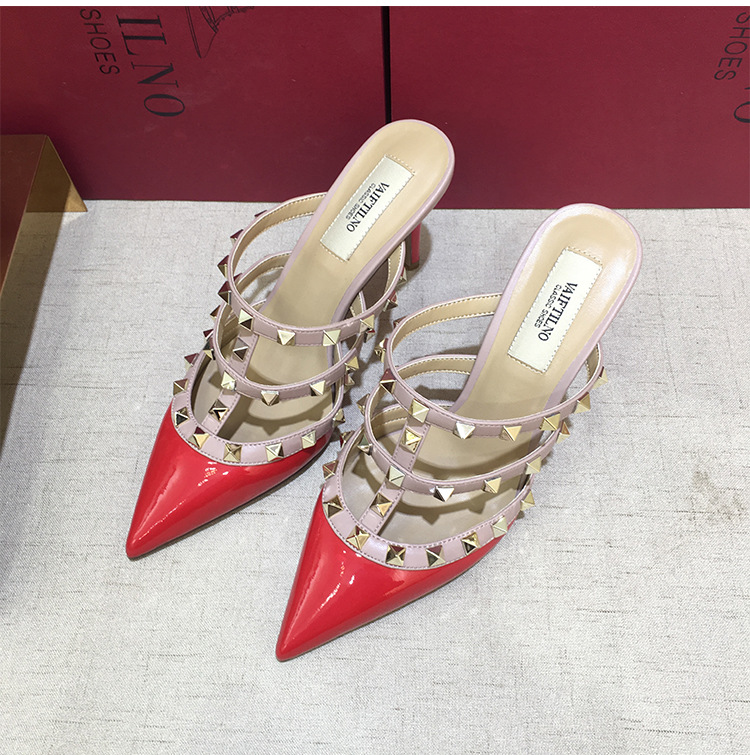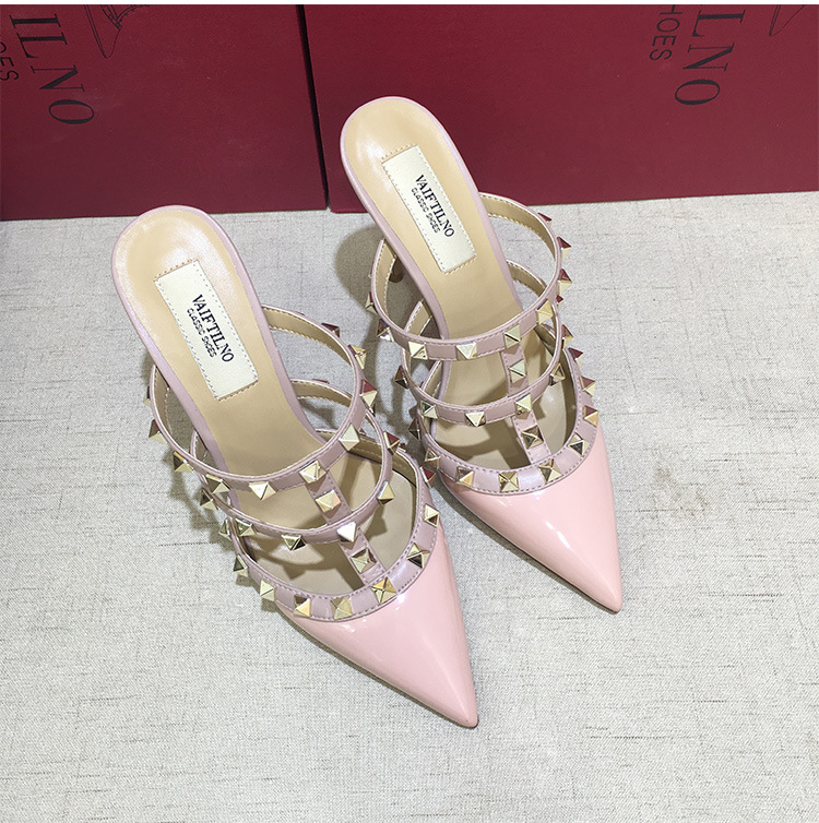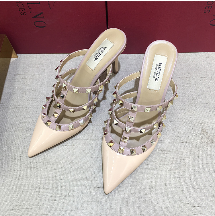 여성용 뾰족코 샌들 2026 여름 신상 유럽풍 원스트랩 토캡 슬리퍼 여성용 외출용 리벳 장식 얇은 굽 하이힐스토어 가기