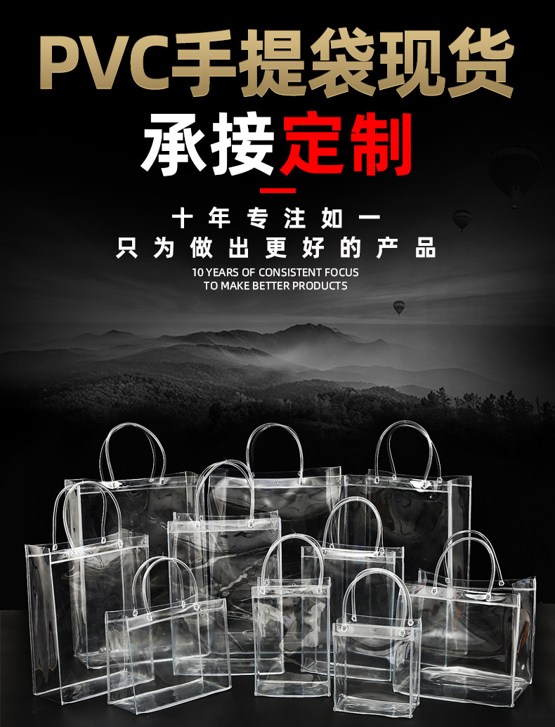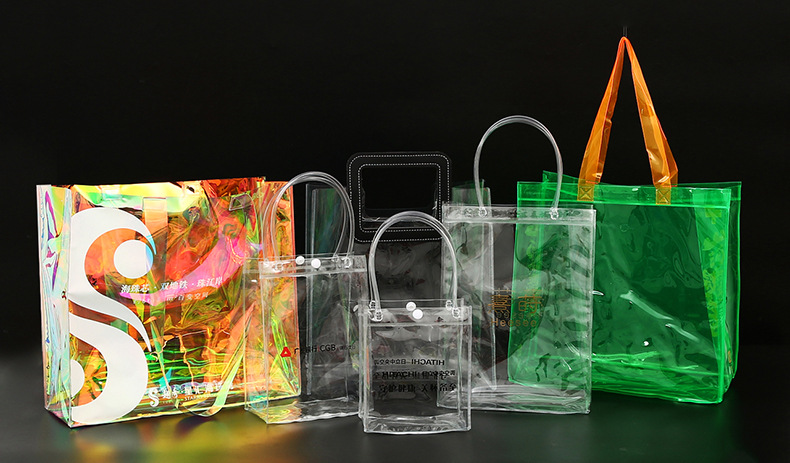 두꺼운 PVC 핸드백 기념품 선물 포장 가방 맞춤형 플라스틱 손가방 내구성 선물용스토어 가기