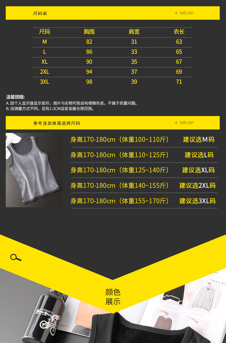 기모 두꺼운 따뜻한 조끼 남성용 슬림 핏 가을과 겨울 민소매 티셔츠 조끼 타이트한 바닥 조끼 95533스토어 가기