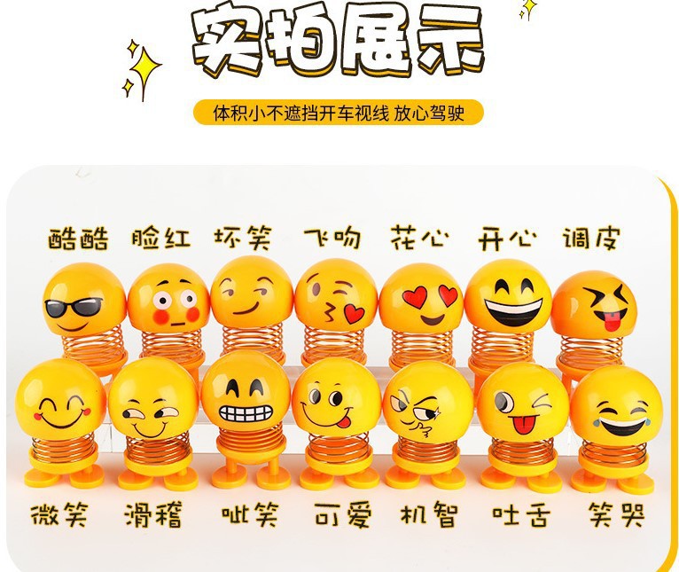 TikTok 귀여운 표현 가방 자동차 만화 봄 인형 쉐이크 헤드 인형 장식품 자동차 바운스 아기 보석스토어 가기