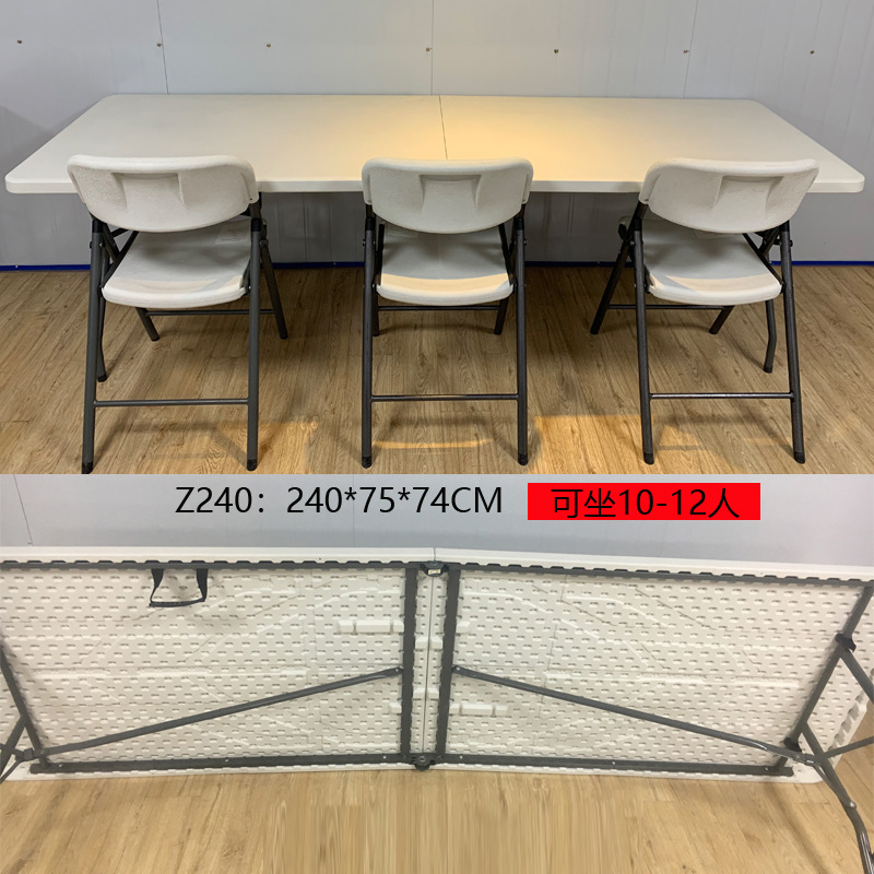 공장 240cm 휴대용 긴 테이블 식탁 훈련 회의 접이식 테이블 스톨 테이블 블로우 몰딩 야외 접이식 테이블 및 의자스토어 가기