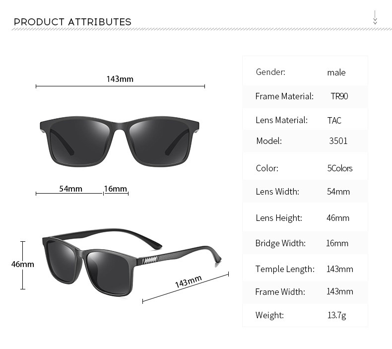 새로운 TR 편광 선글라스 남자 패션 운전 선글라스 야외 국경 태양 안경 3501 스팟 도매스토어 가기