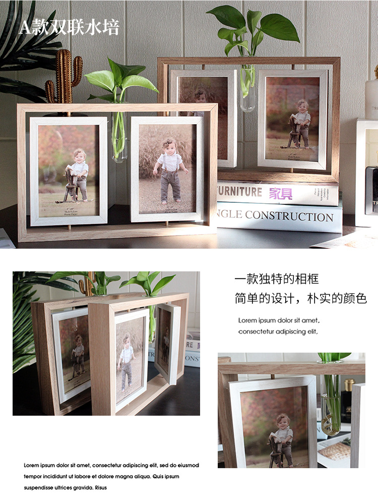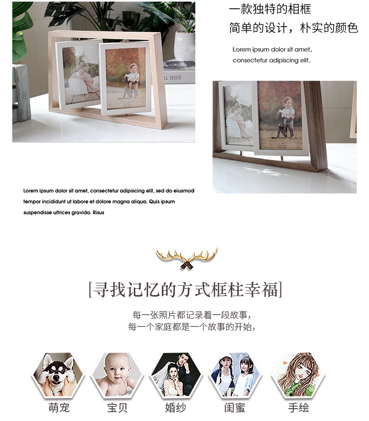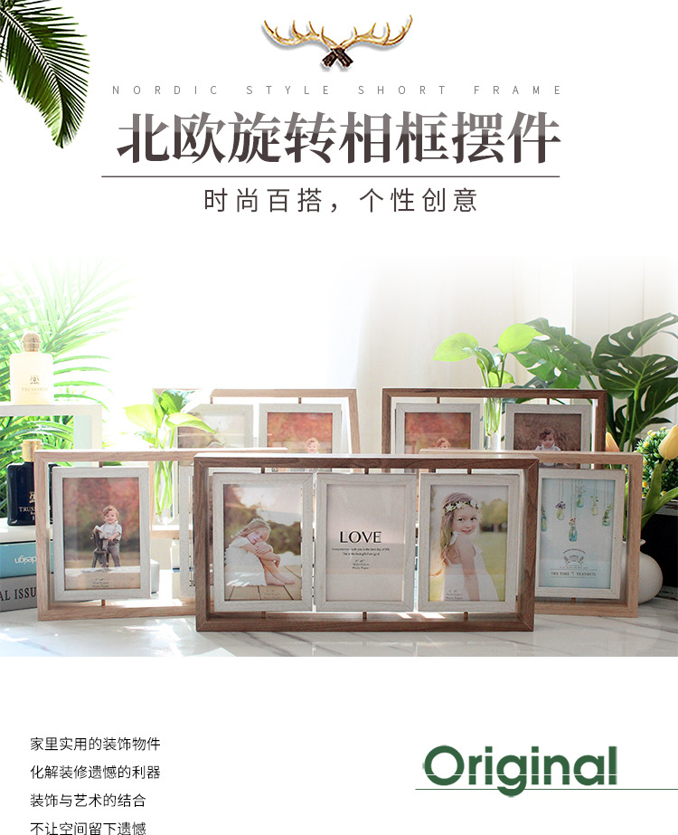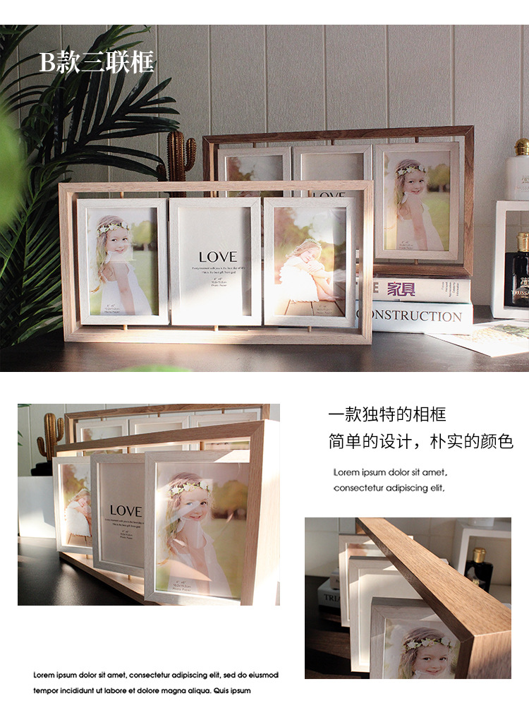크리 에이 티브 북유럽 나무 사진 프레임 테이블 6inch 회전 양면 조합 여러 사진 결합 사진 프레임 국경 간 도매