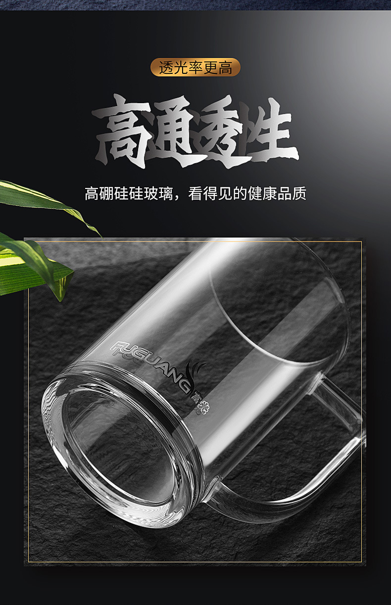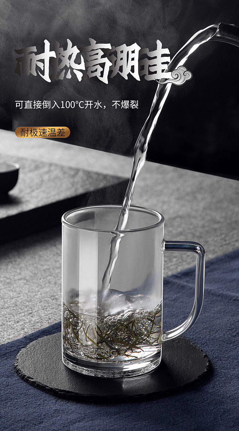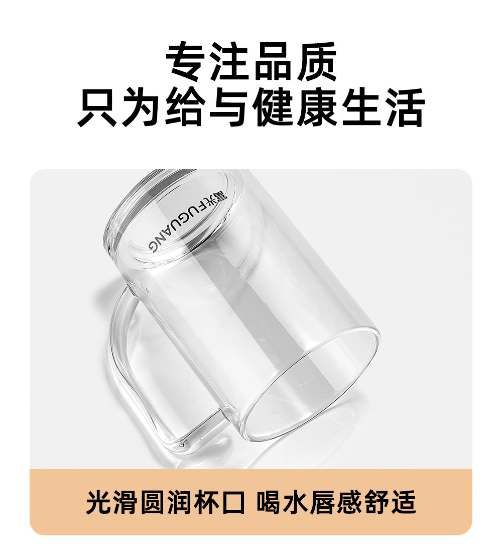 푸광 물컵, 심플 투명컵, 고붕규산 유리컵, 두꺼운 찻잔, 손잡이가 있는 컵, 맞춤 도매