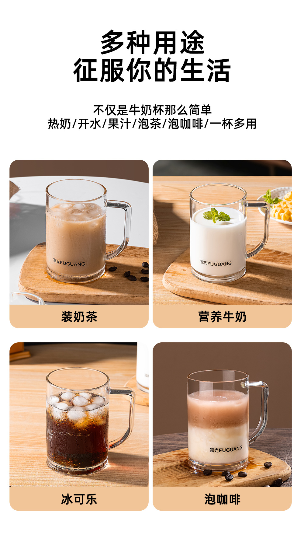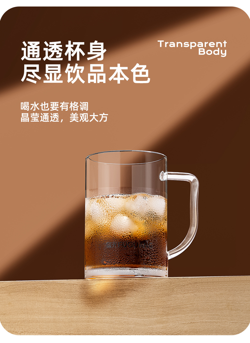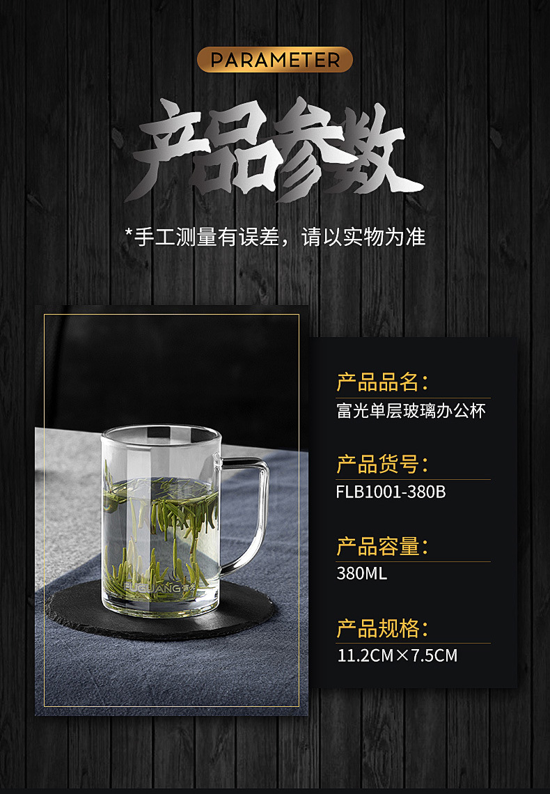 푸광 물컵, 심플 투명컵, 고붕규산 유리컵, 두꺼운 찻잔, 손잡이가 있는 컵, 맞춤 도매